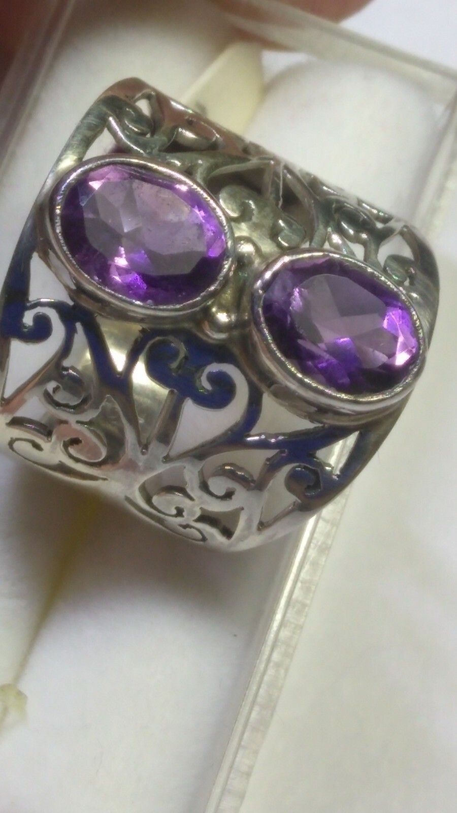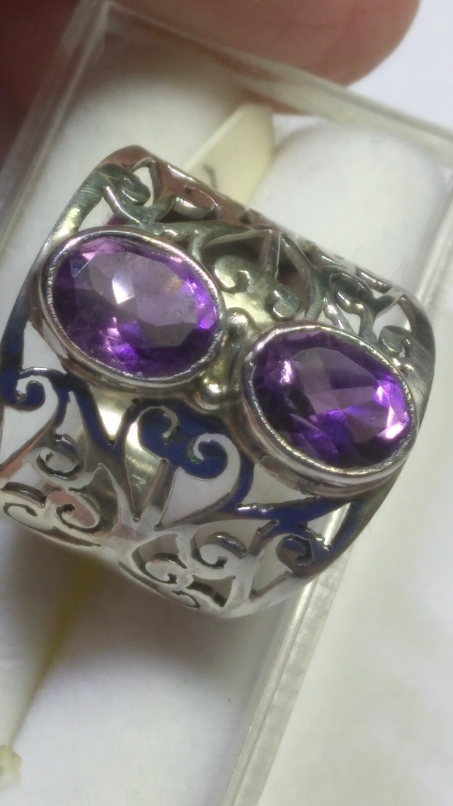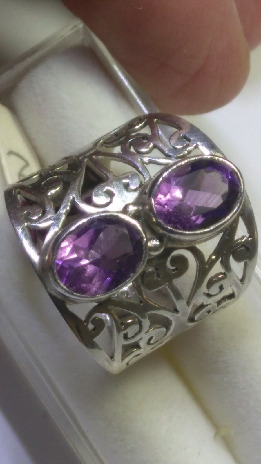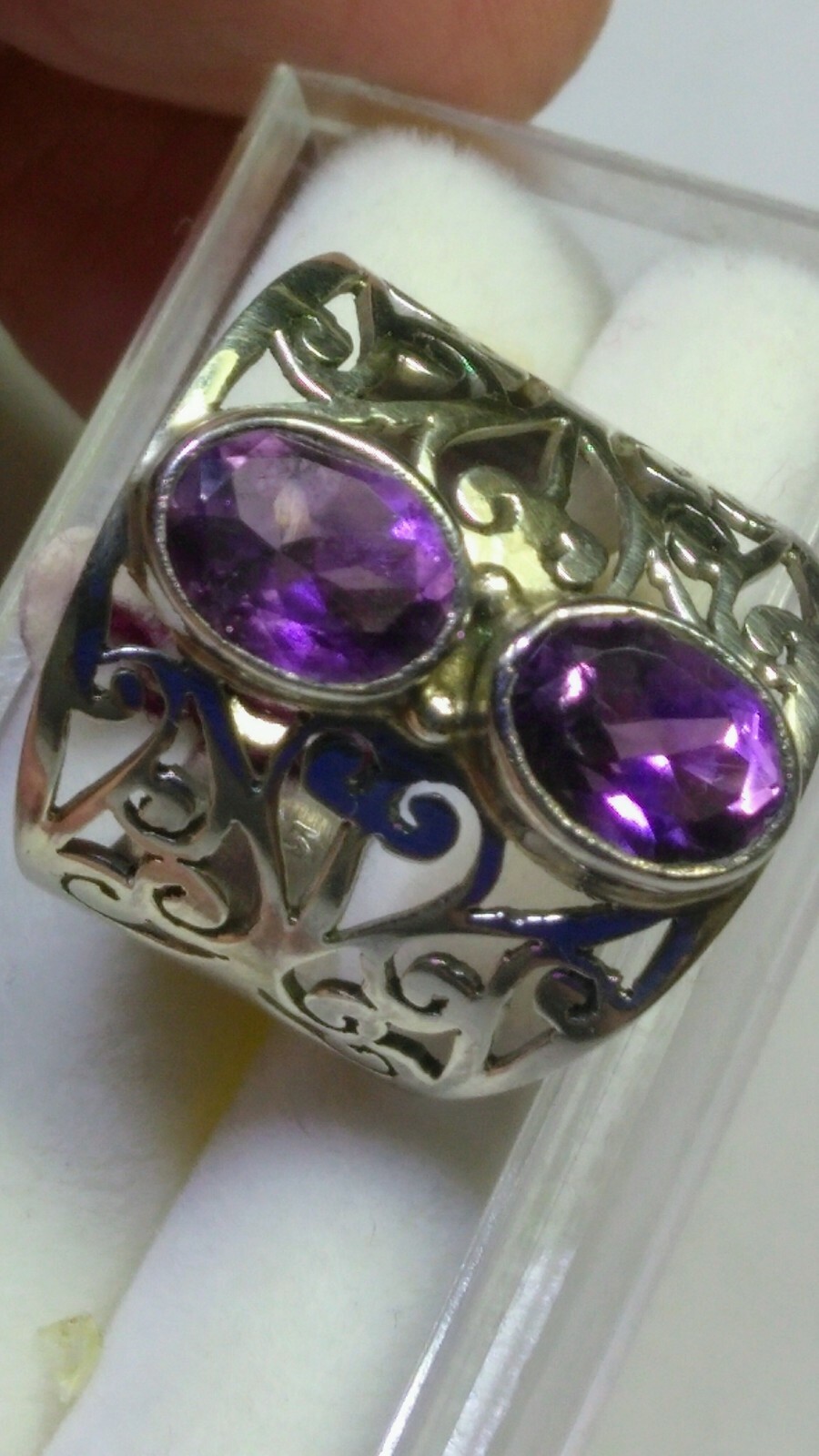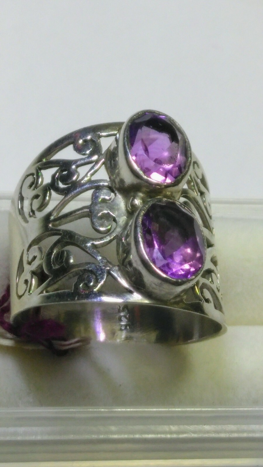как выглядит LIVELY NATURAL TWIN AMETHYST IN.925 STERLING SILVER RING IN SIZE 8.0 фото