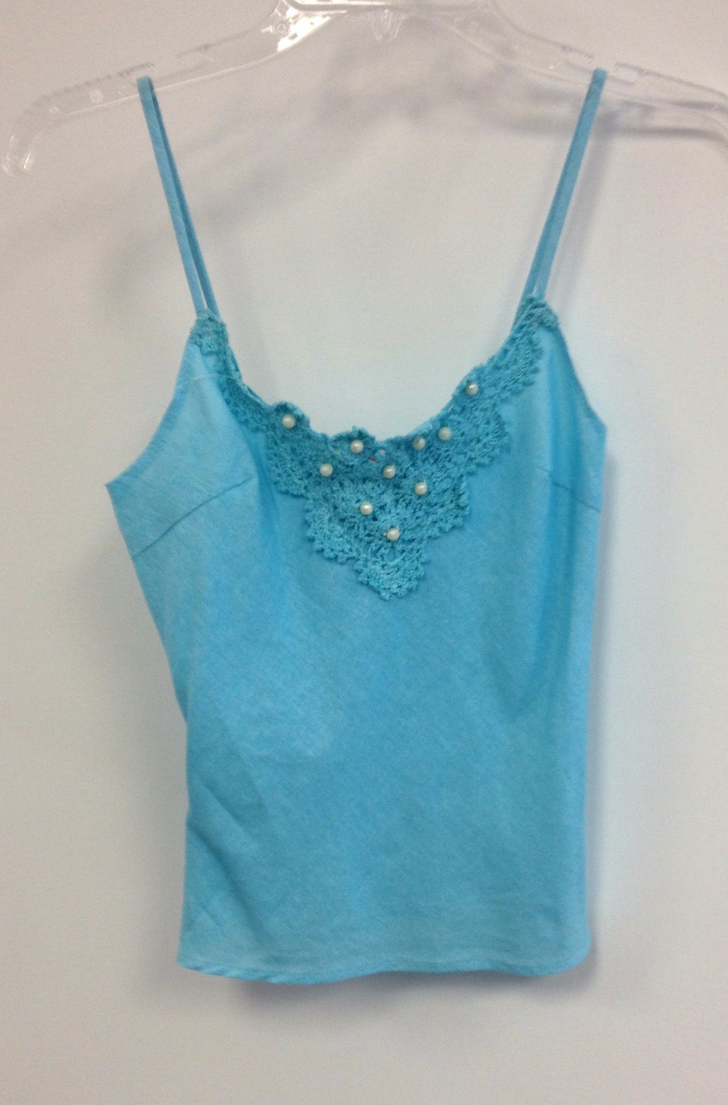 NEW Designer Linen Blend Exquz Pearl Bead Crochet Lace Tank Cami Top 38 retail