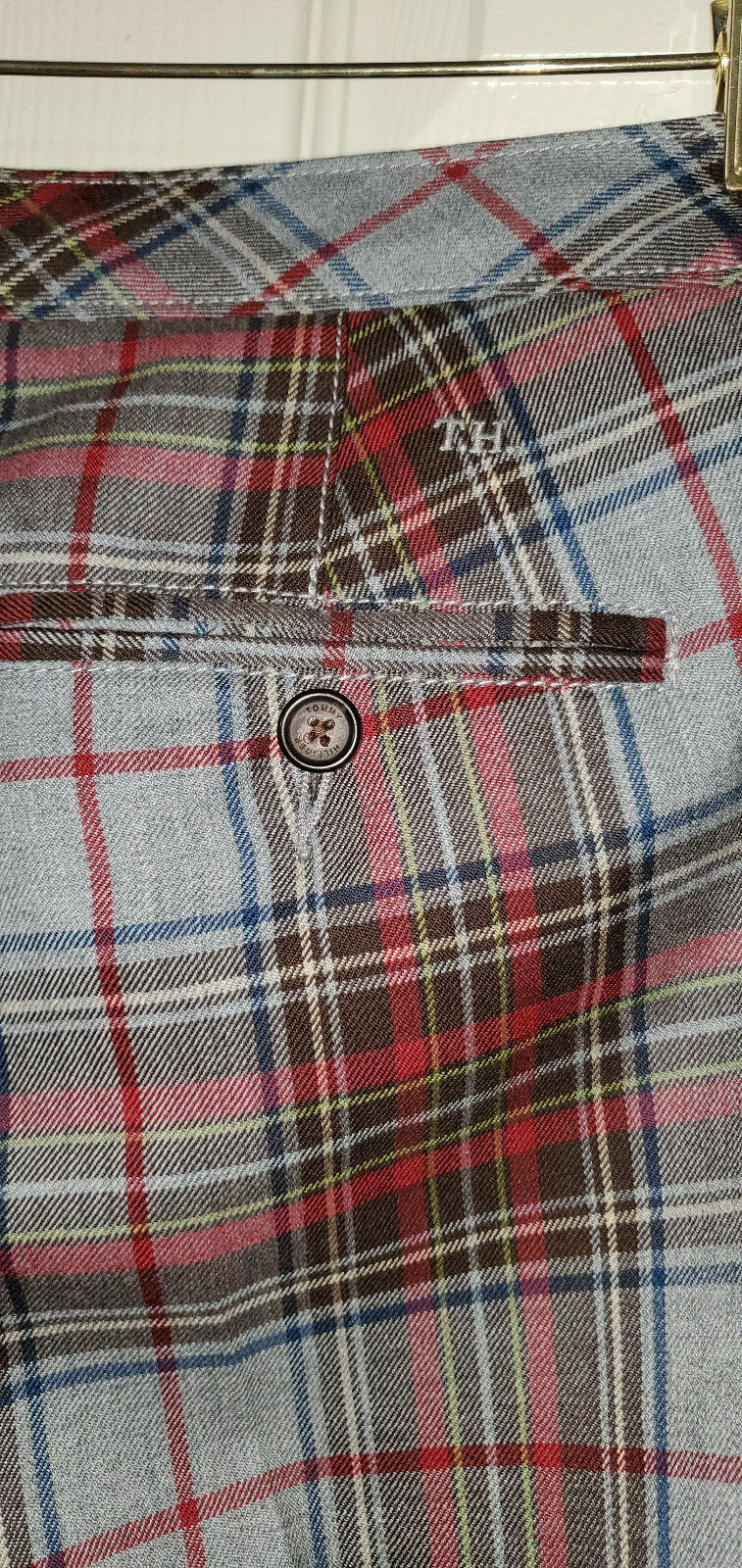 Tommy Hilfiger Womens Gray Red Plaid 100 Wool Straight Pants, Lined Sz. 4