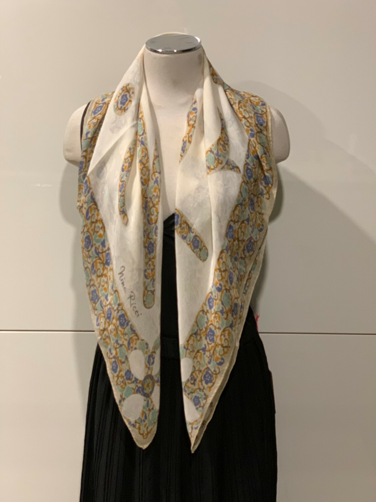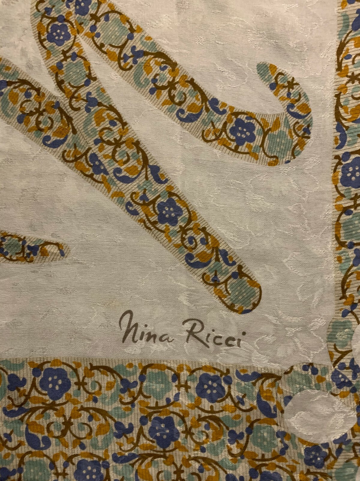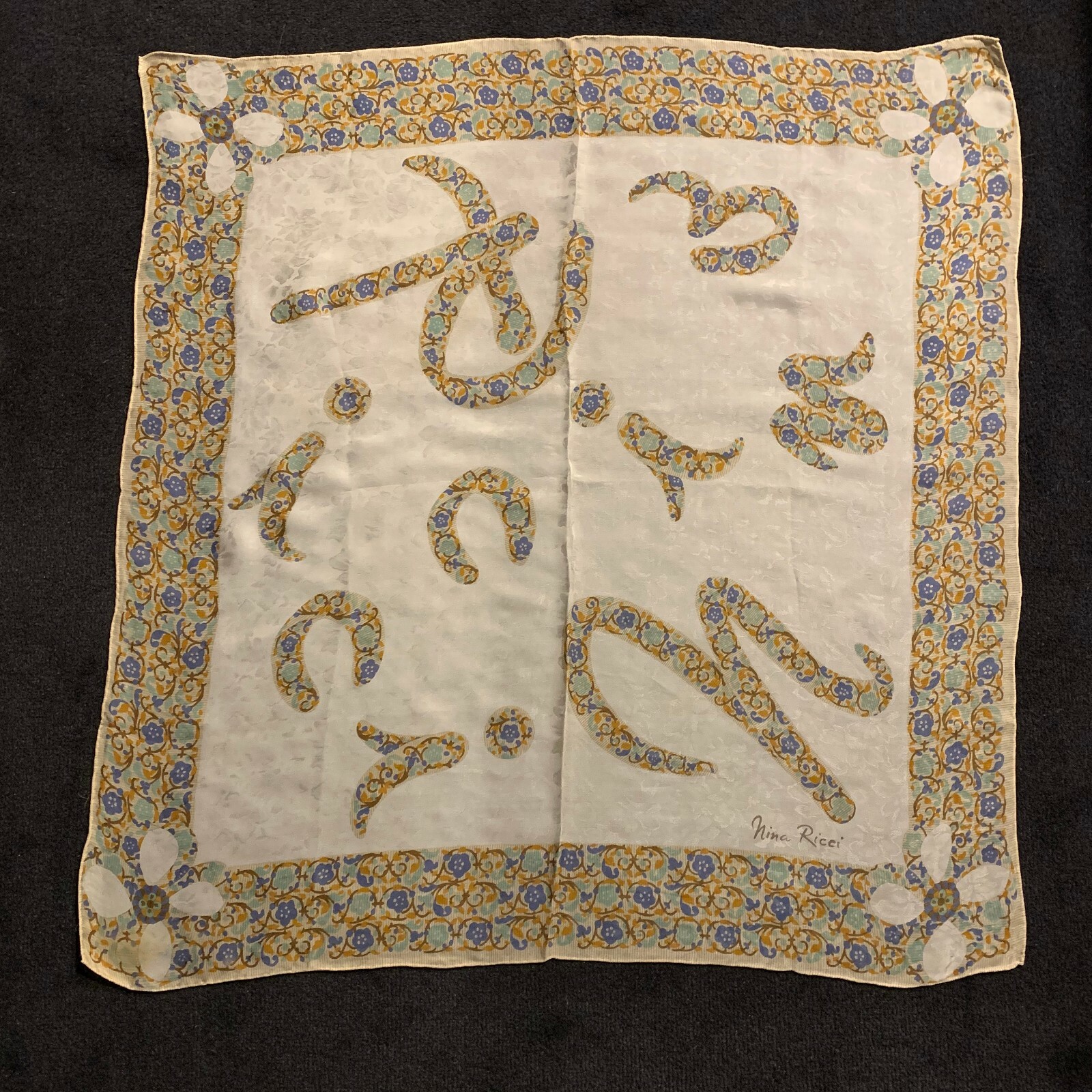 как выглядит NINA RICCI PARIS Silk Jacquard Chiffon Floral Logo Scarf 82x82cm Handroll Hems фото