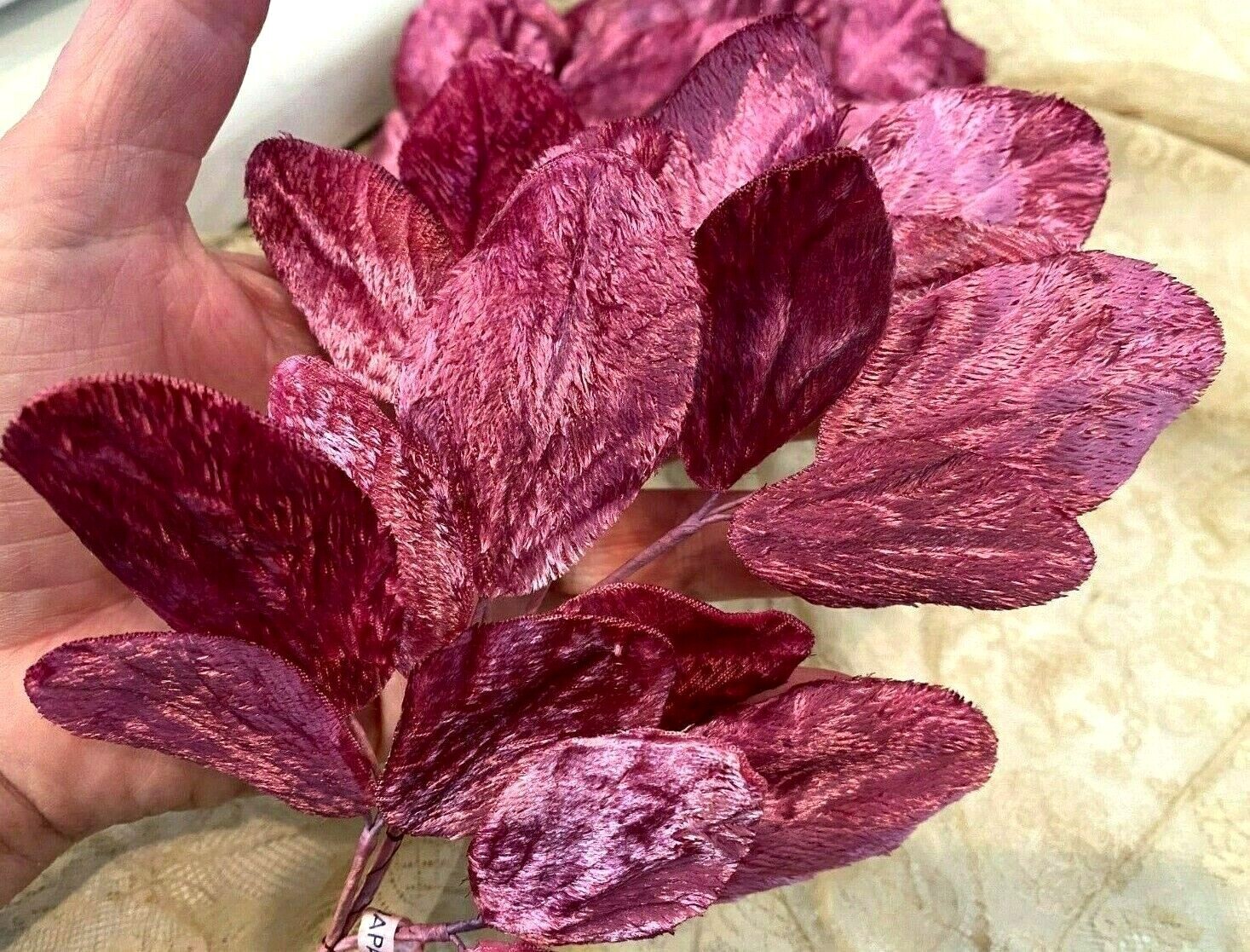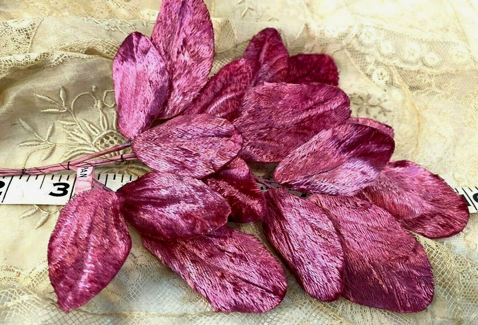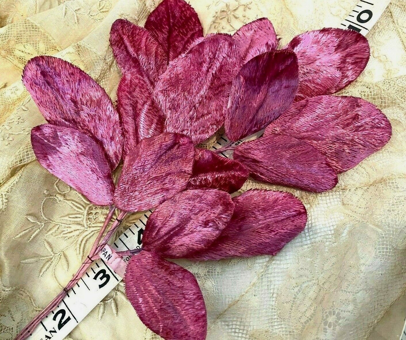 vintage millinery 1940s velvet leaves 1 spray made in Japan deep oriental rose