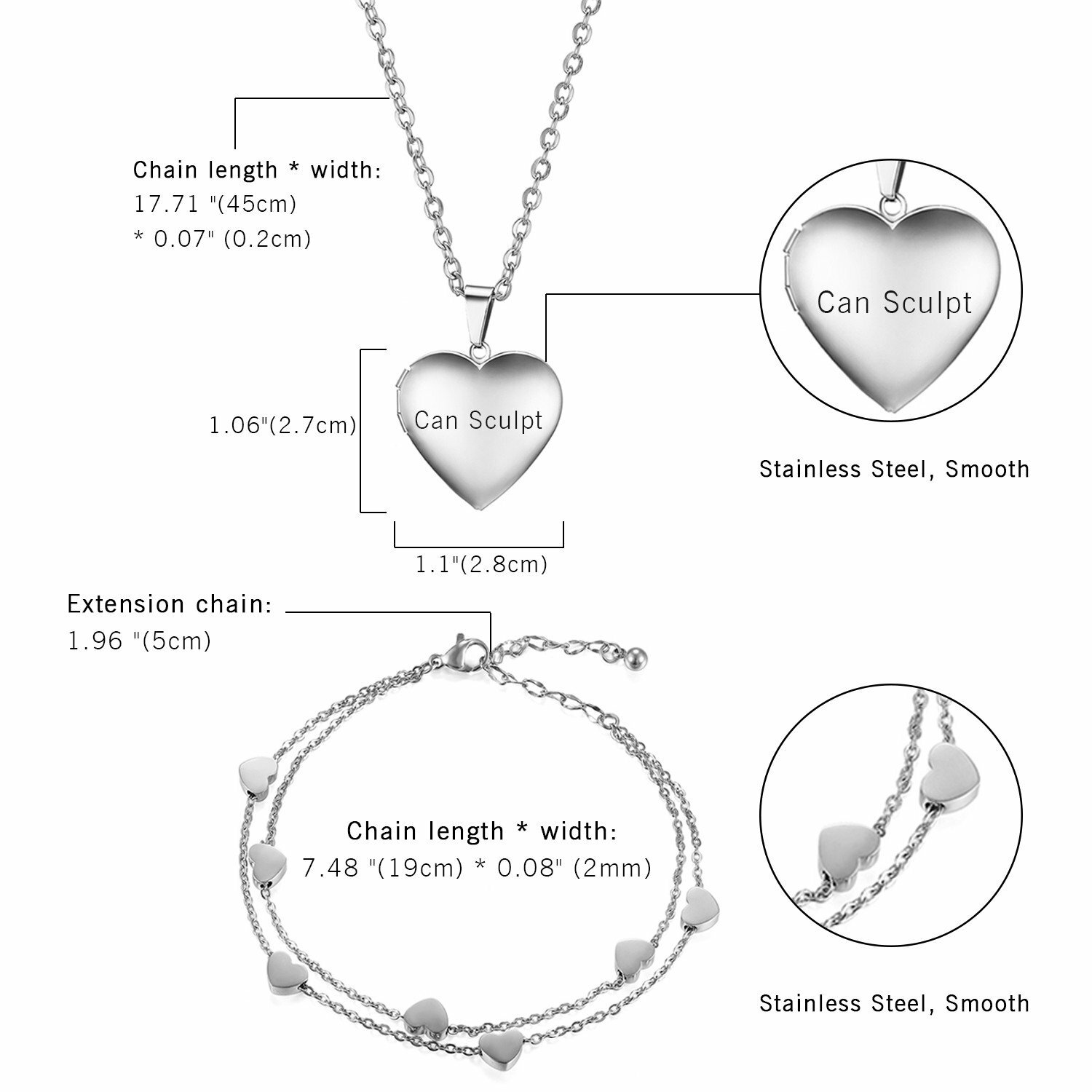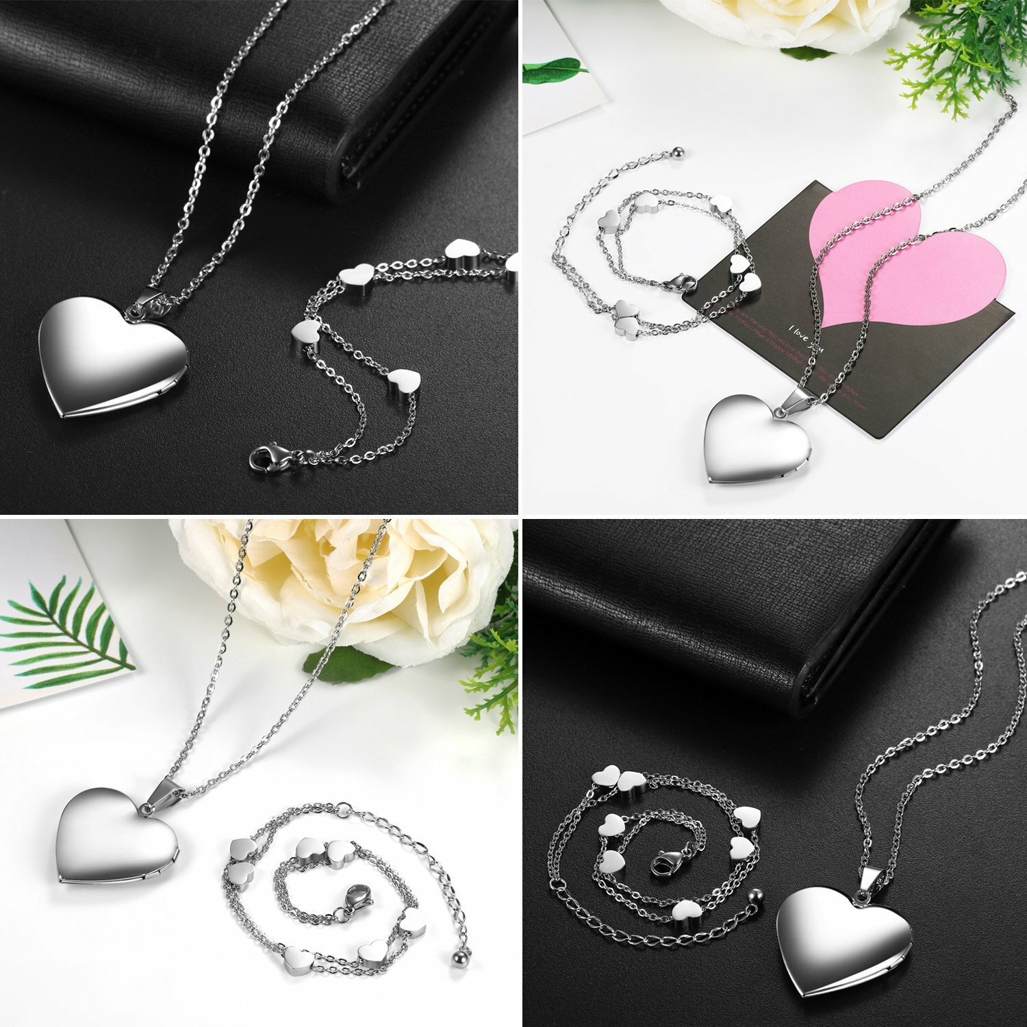 Stainless Steel Women Girls Heart Pendant Necklace Bracelet Jewelry Set Gift