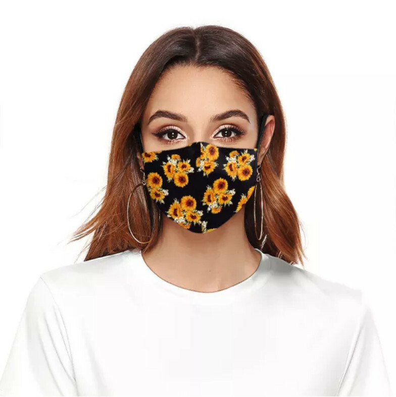 Sun Flowers Face Masks Washable Black Adjustable Adult cloth Daisy Sunflower NEW