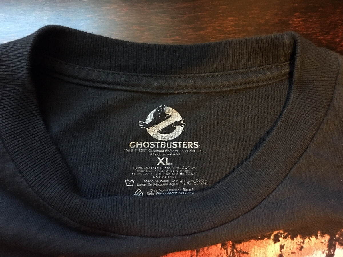 как выглядит Ghostbusters Stay Puft Marshmallow Man Flames Shirt XL Black 2007 Halloween фото