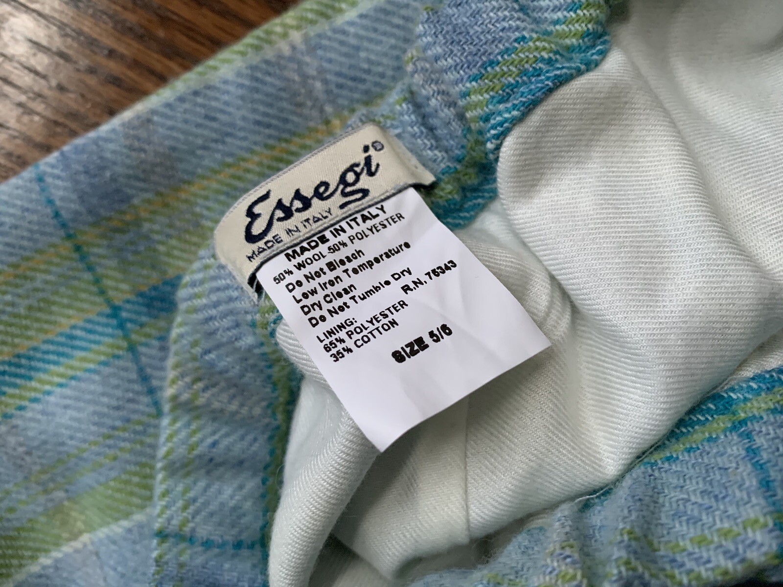 как выглядит Vintage Girl Essegi Italy Wool Plaid Pants Velvet Trim Detail Blue/Yellow 5/6 фото