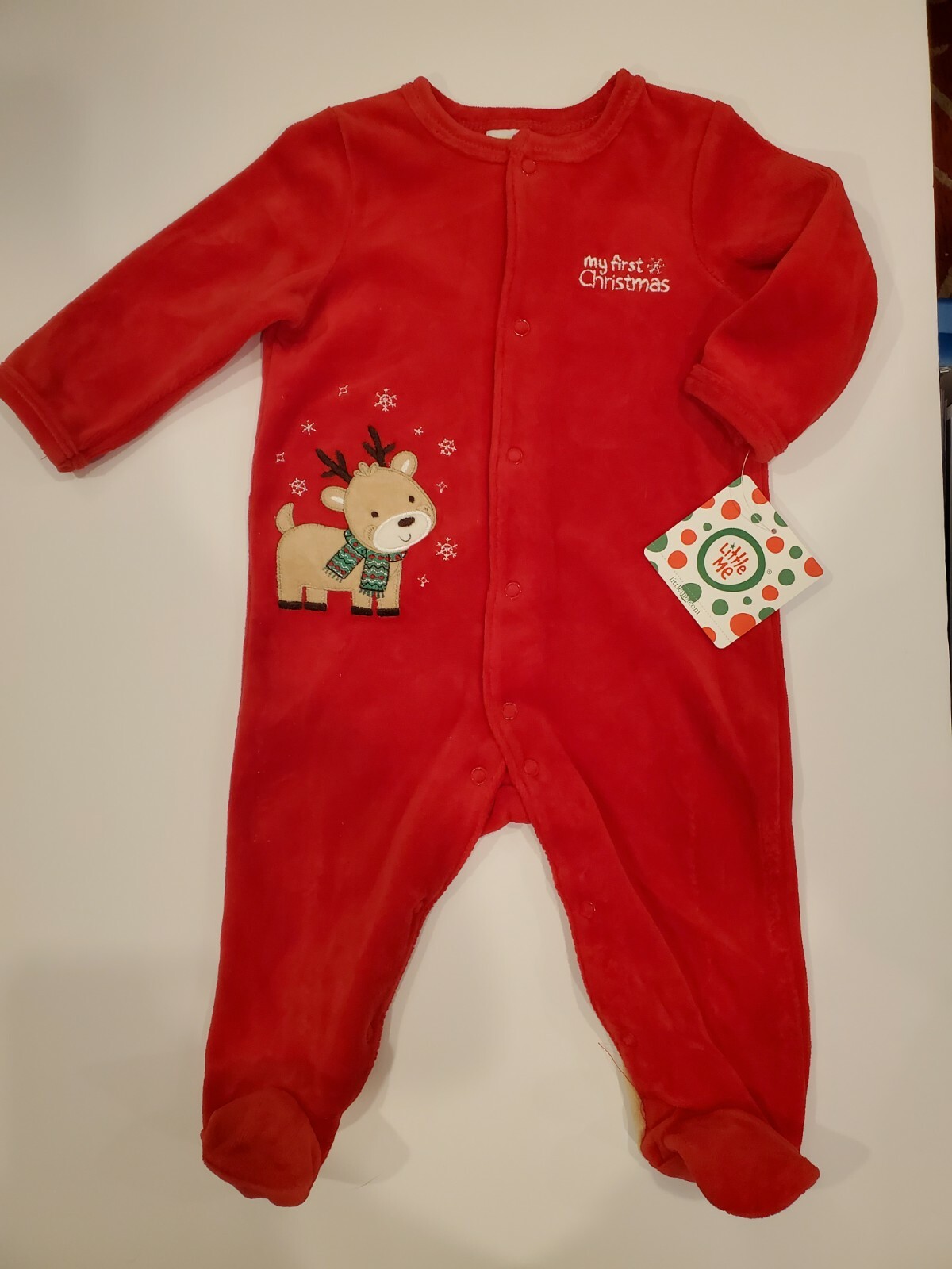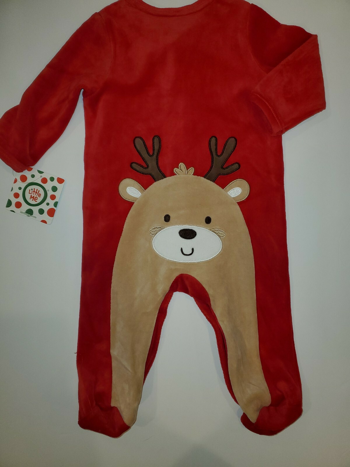 как выглядит Little Me My 1st Christmas Reindeer Velour Footie Red Choose Size фото