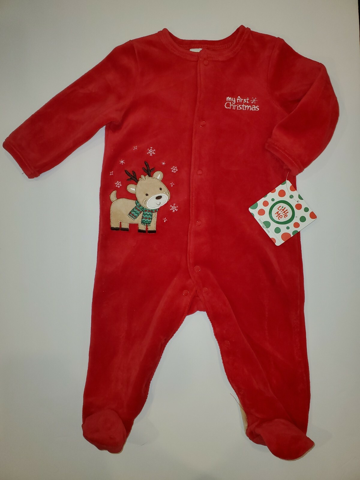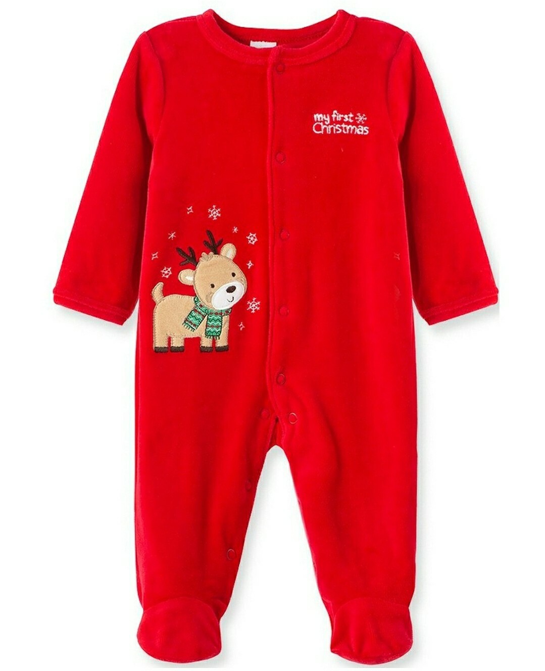 Little Me My 1st Christmas Reindeer Velour Footie Red Choose Size