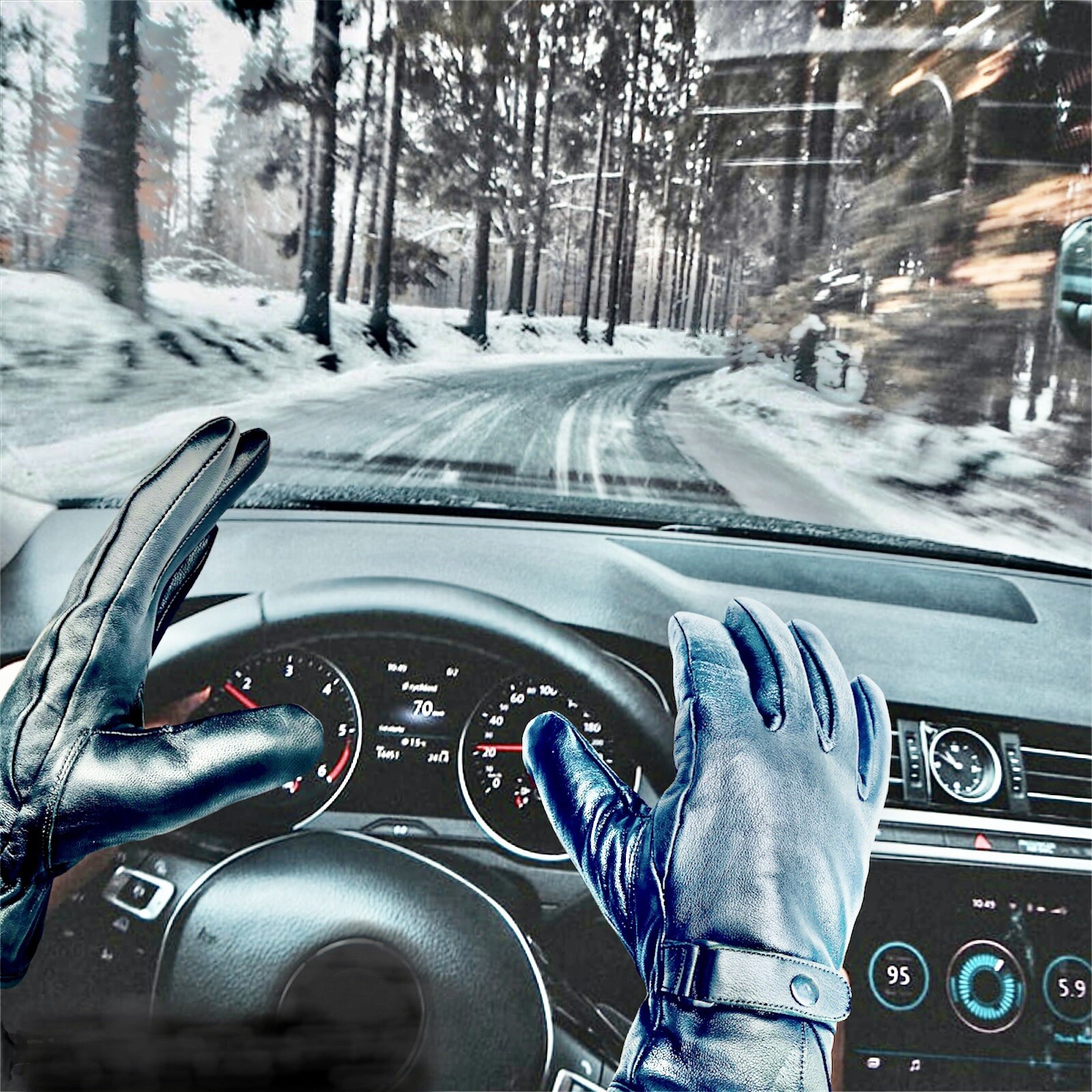Men's Genuine Sheep Premium Leather Warm Winter Wrist Driving ,Motorcycle Gloves