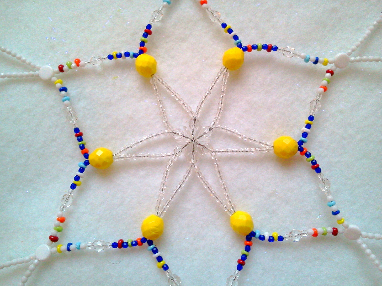 • CHRISTMAS BEADED LARGE SNOWFLAKE ORNAMENT IN OPAQUE WHITE AND MULTICOLOR CZECH
