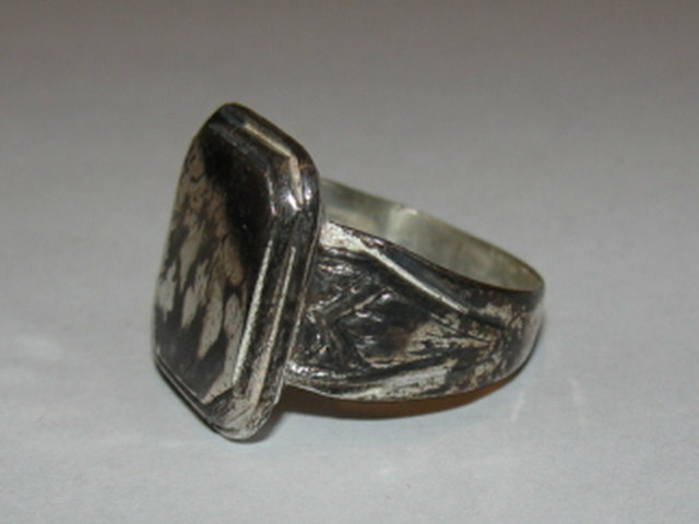 Rectangular Shaped Antiqued Sterling Silver Signet Ring Alberto Juan