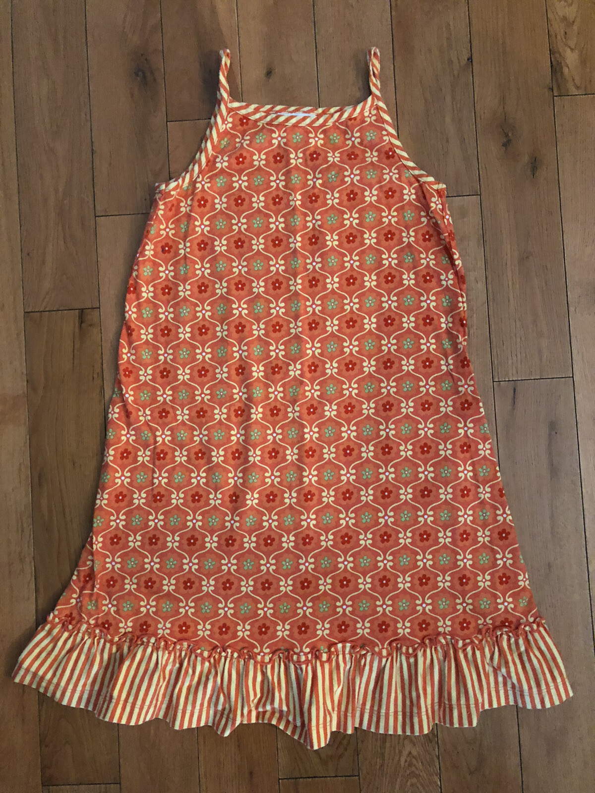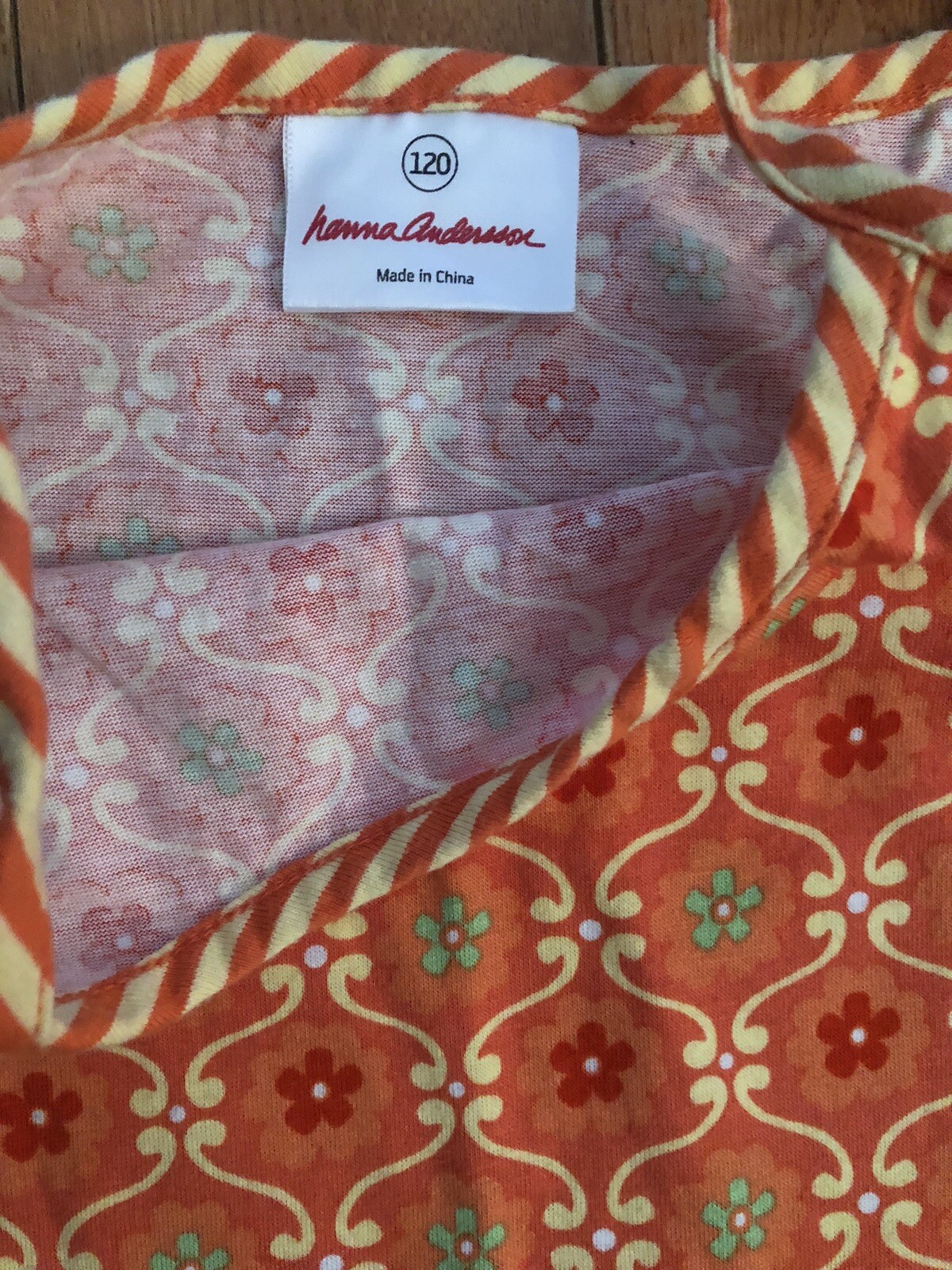 Hanna Andersson Orange Print Strap Dress Sz 120- 6-8 Yrs Old Pre Owned