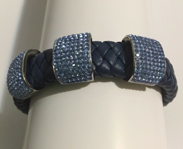 Women's Blue Braided Leather Stainless Steel Bracelet Crystals Magnetic Clasp