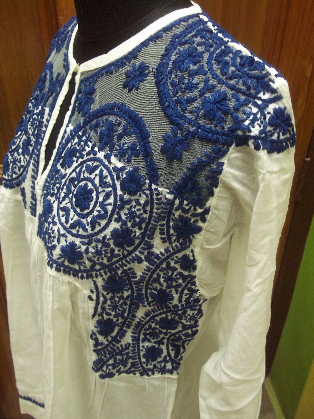 как выглядит HANDMADE M XL 2XL ETHNIC CHIKAN EMBROIDERY KURTI 100 COTTON TUNIC TOP KURTA фото