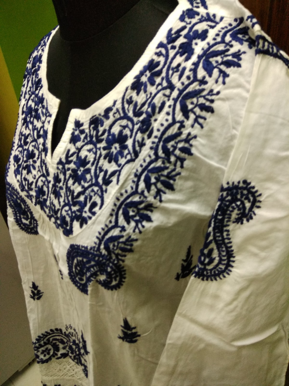 как выглядит TUNIC M L BLOUSE KURTI HANDMADE CHIKAN EMBROIDERY ETHNIC KURTA 100 COTTON TOP фото