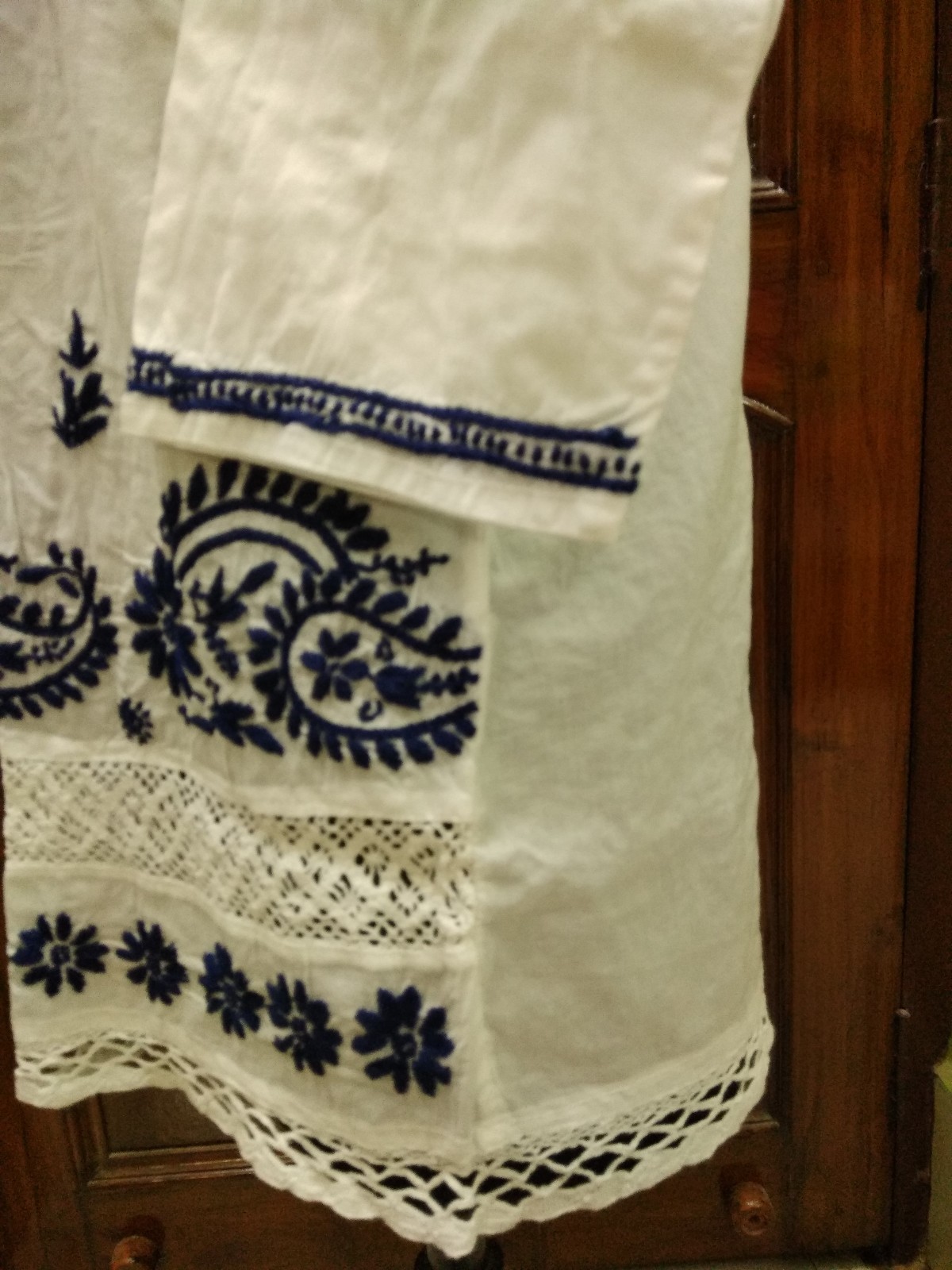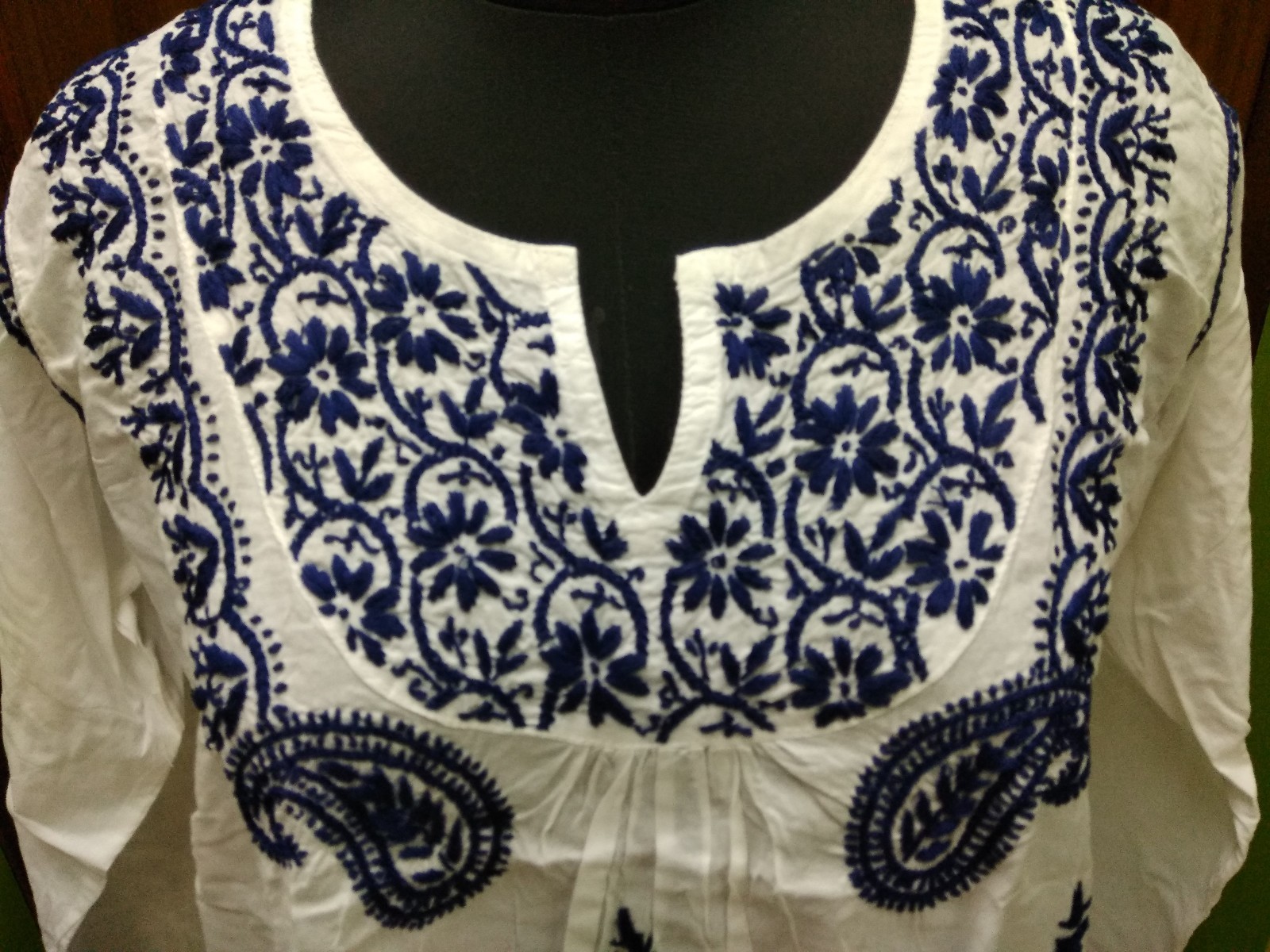 TUNIC M L BLOUSE KURTI HANDMADE CHIKAN EMBROIDERY ETHNIC KURTA 100 COTTON TOP
