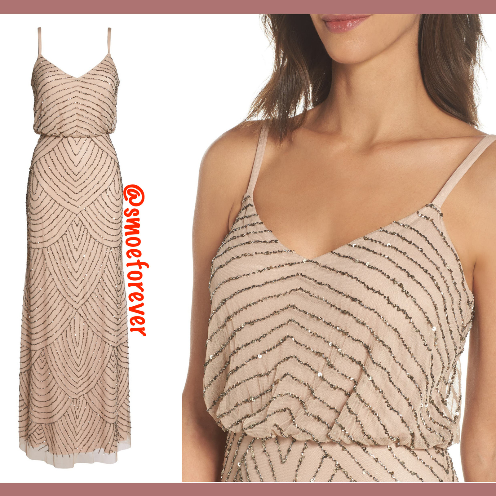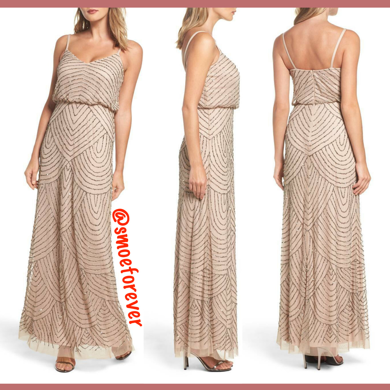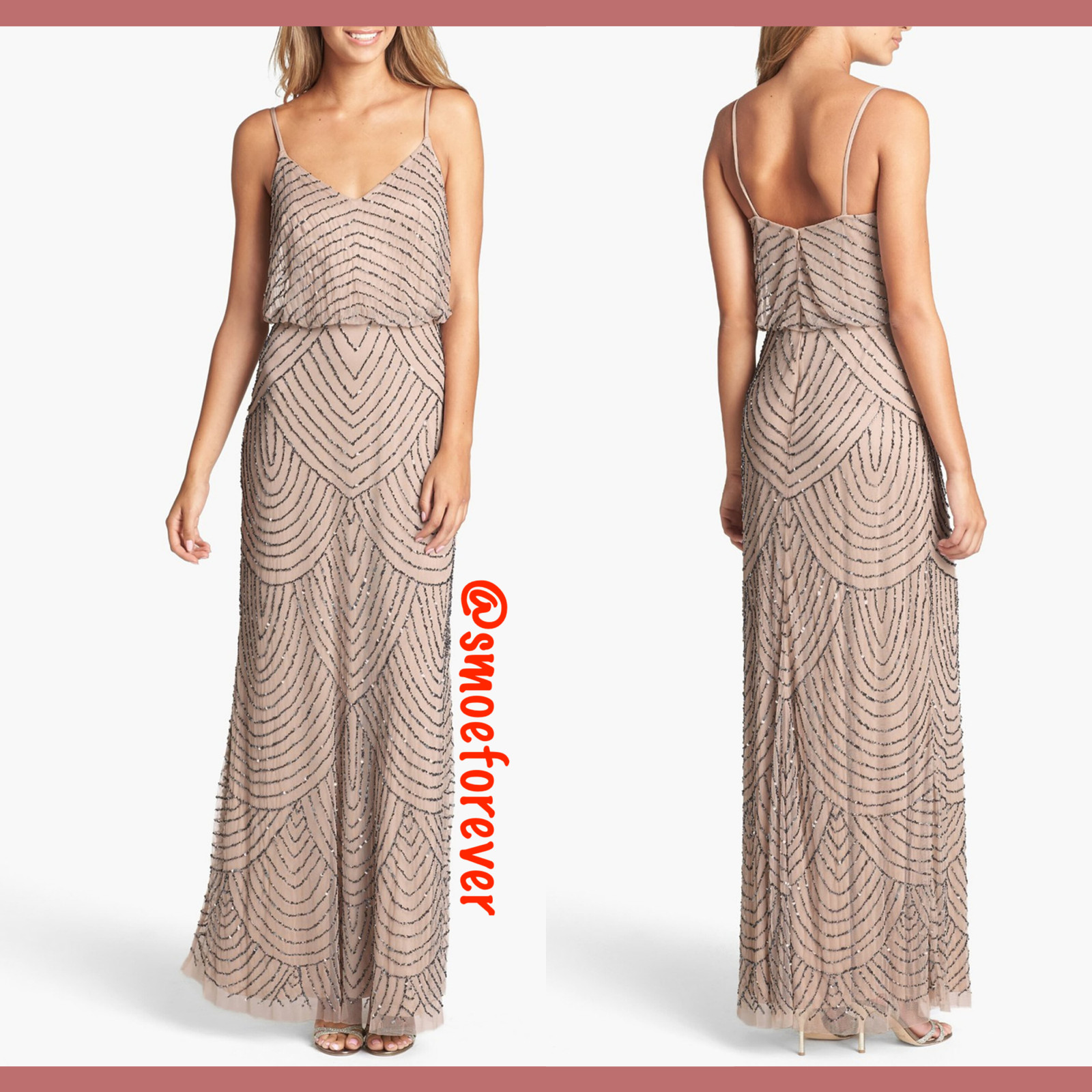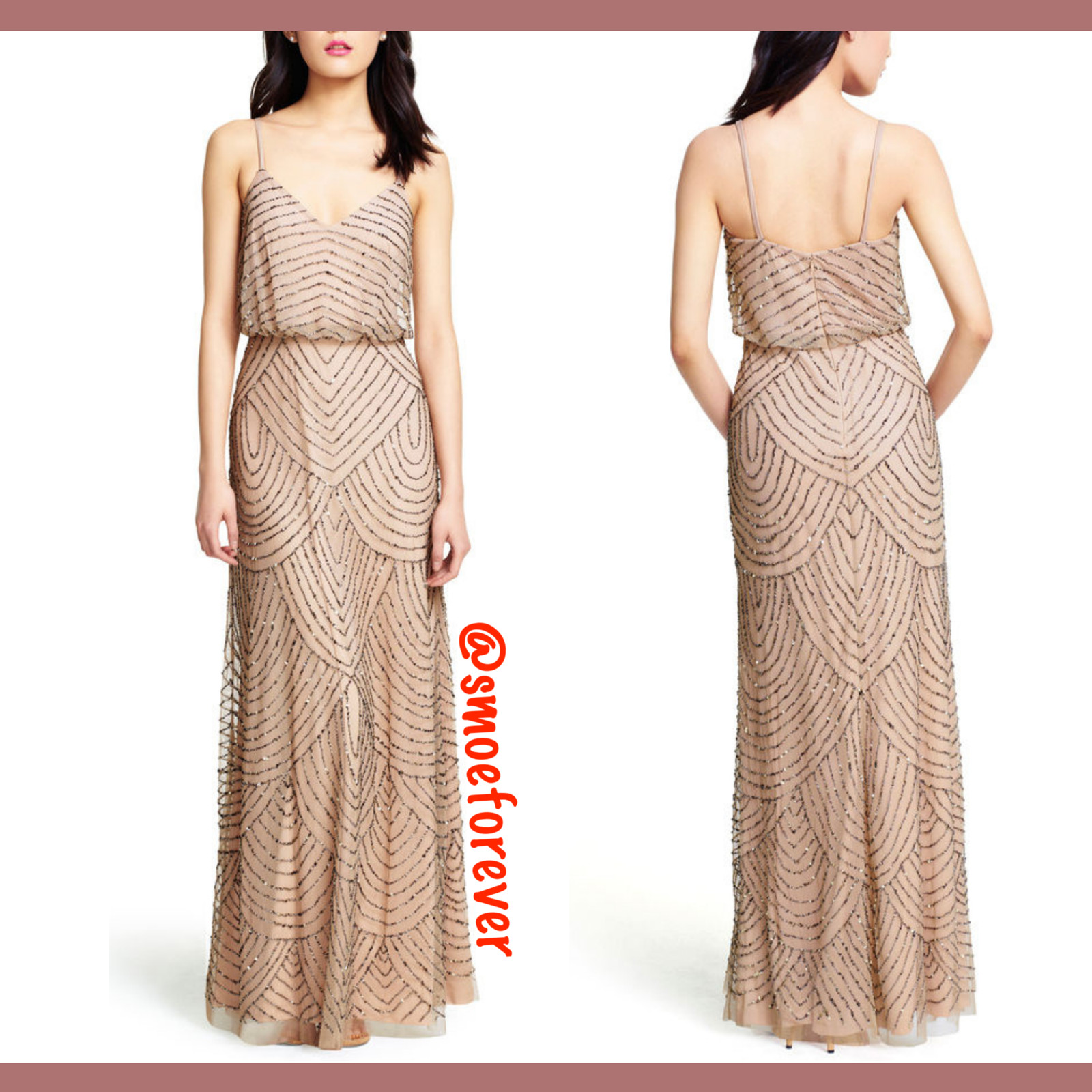 NEW 260 Adrianna Papell Art Deco Beaded Blouson Gown in Taupe Pink SZ 10 M2