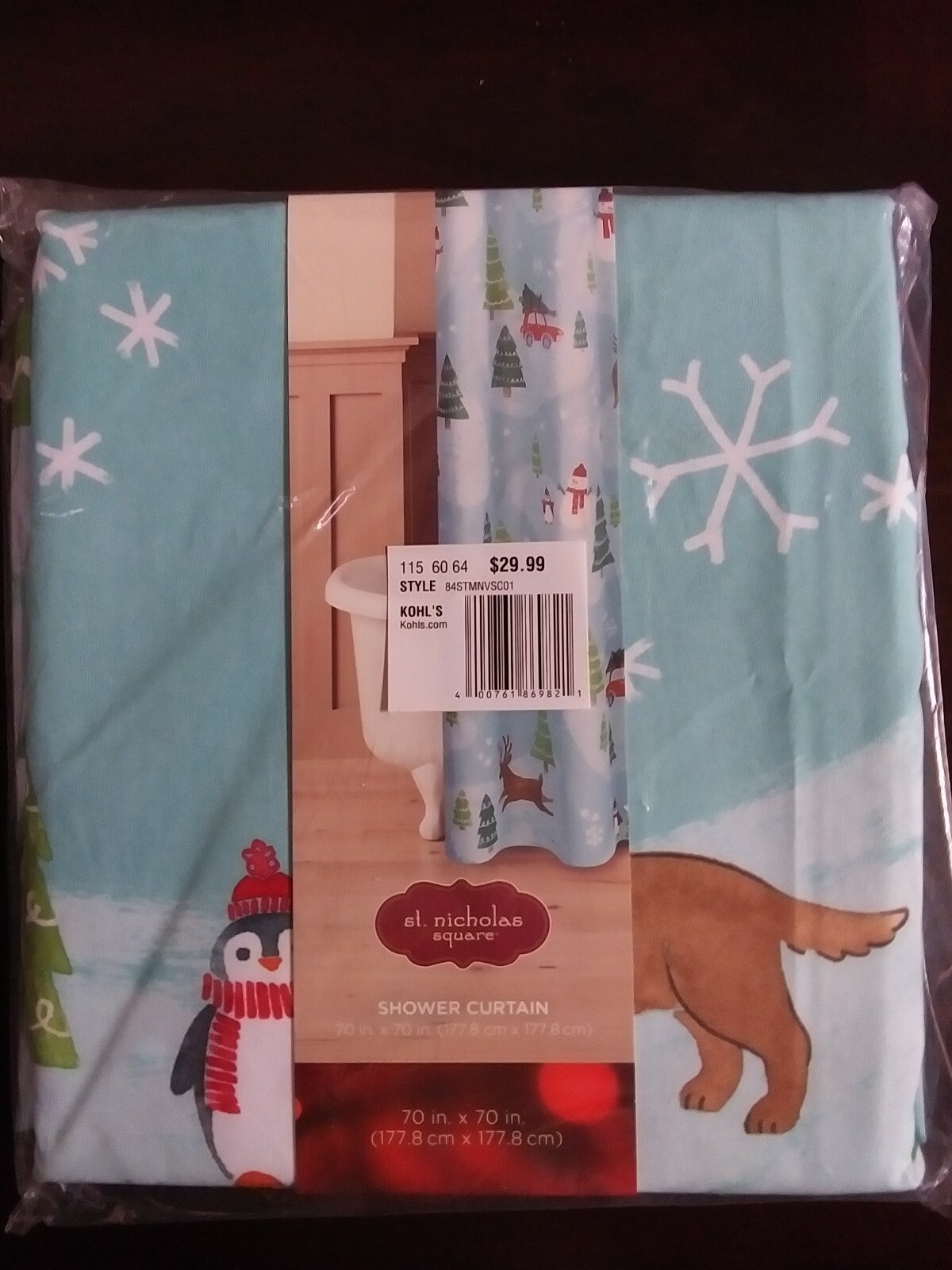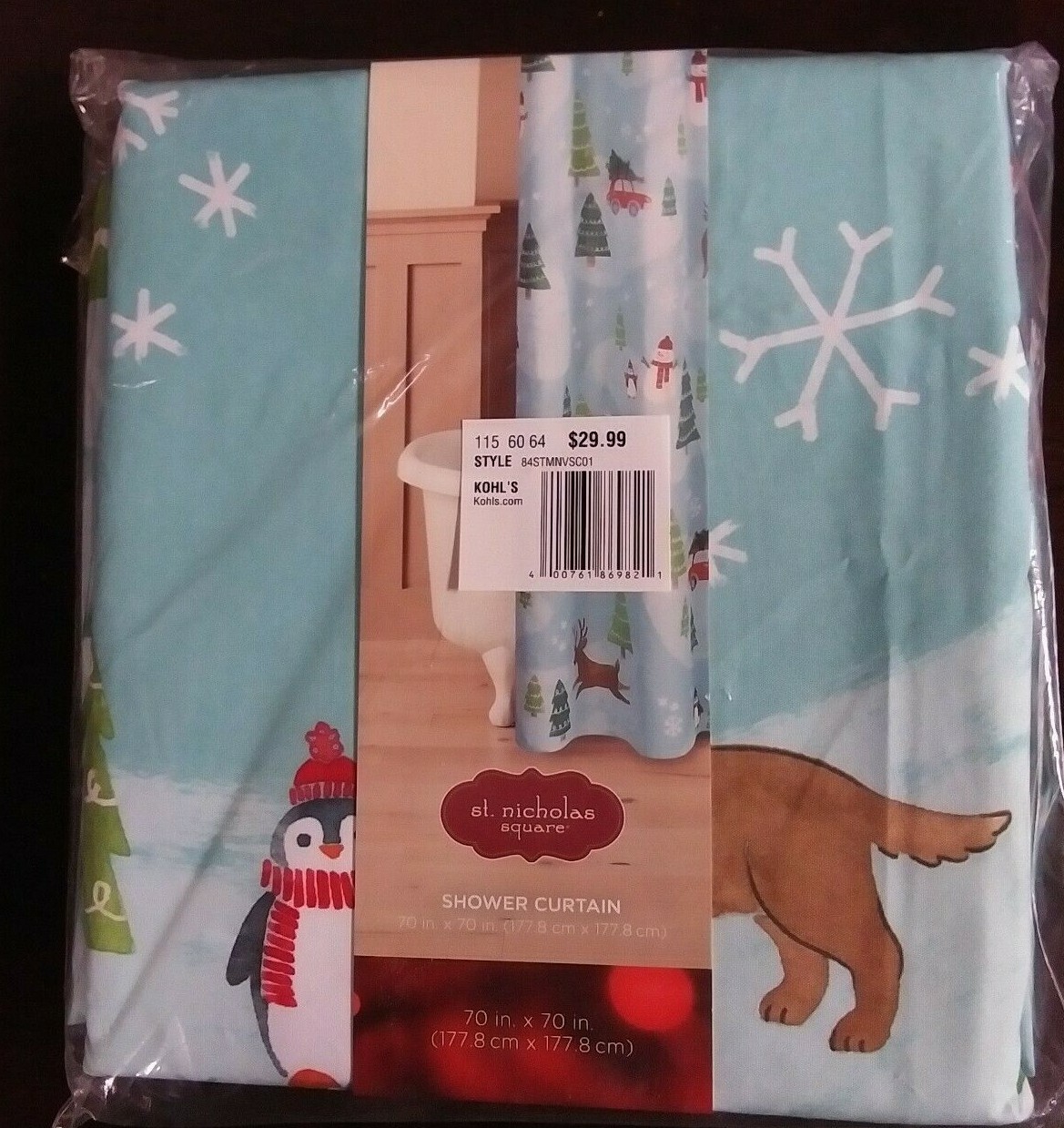 как выглядит Winter Holidays Snowman,Dog Evergreens St Nicholas Square Shower Curtain фото