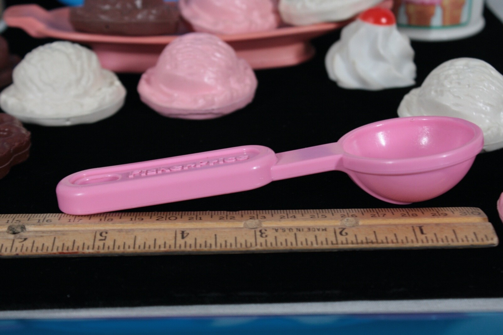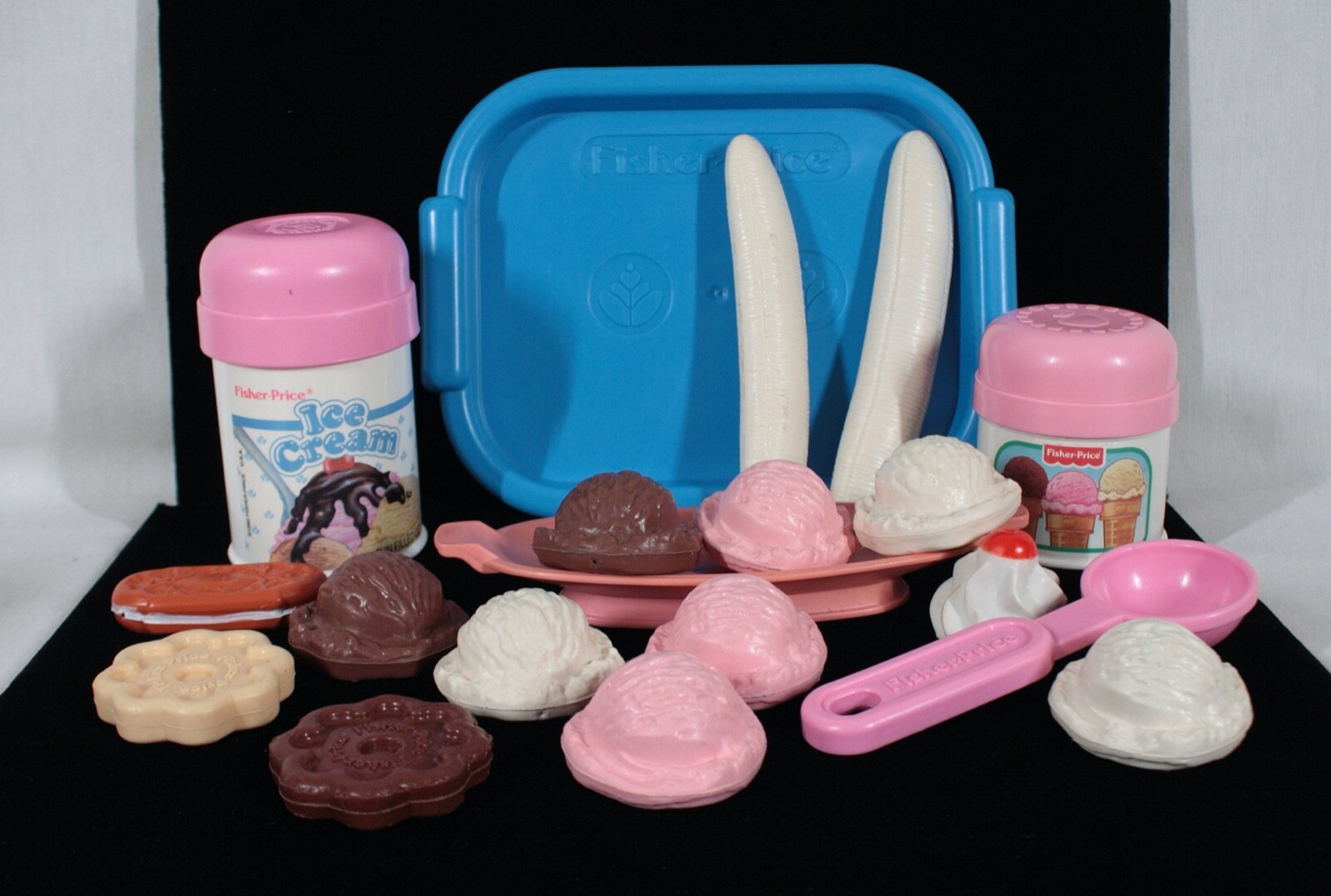 RARE VINTAGE FISHER PRICE PRETEND PLAY FUN WITH FOOD ICE CREAM PLAYSET 21 PCS