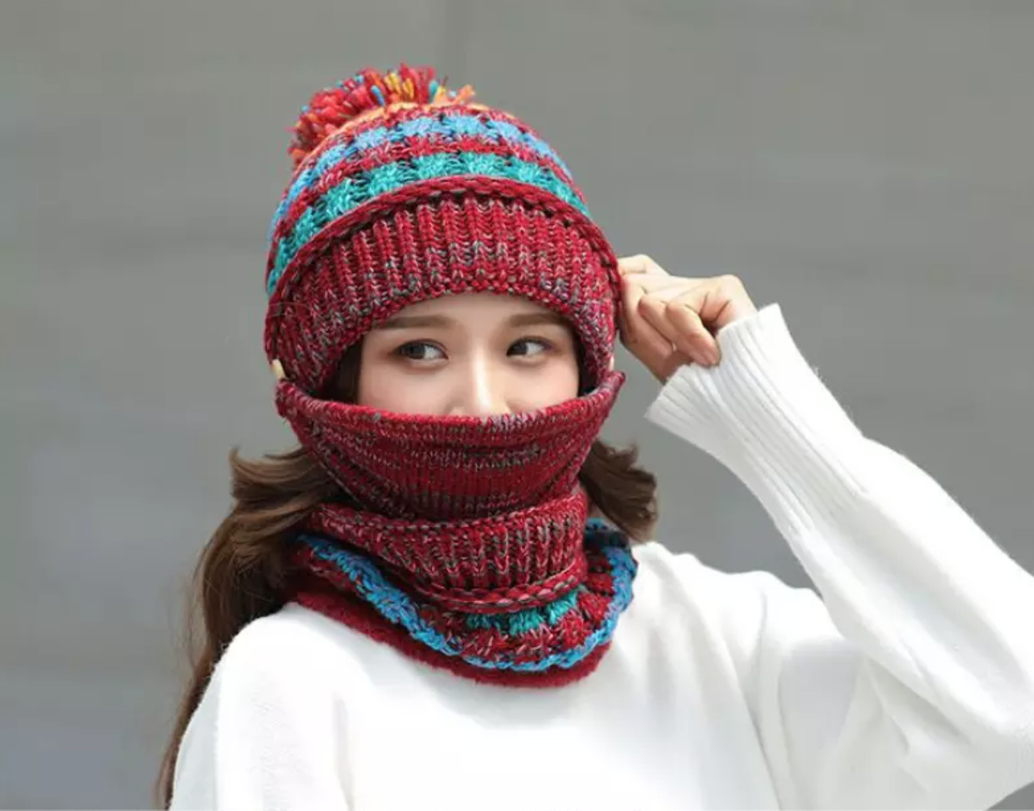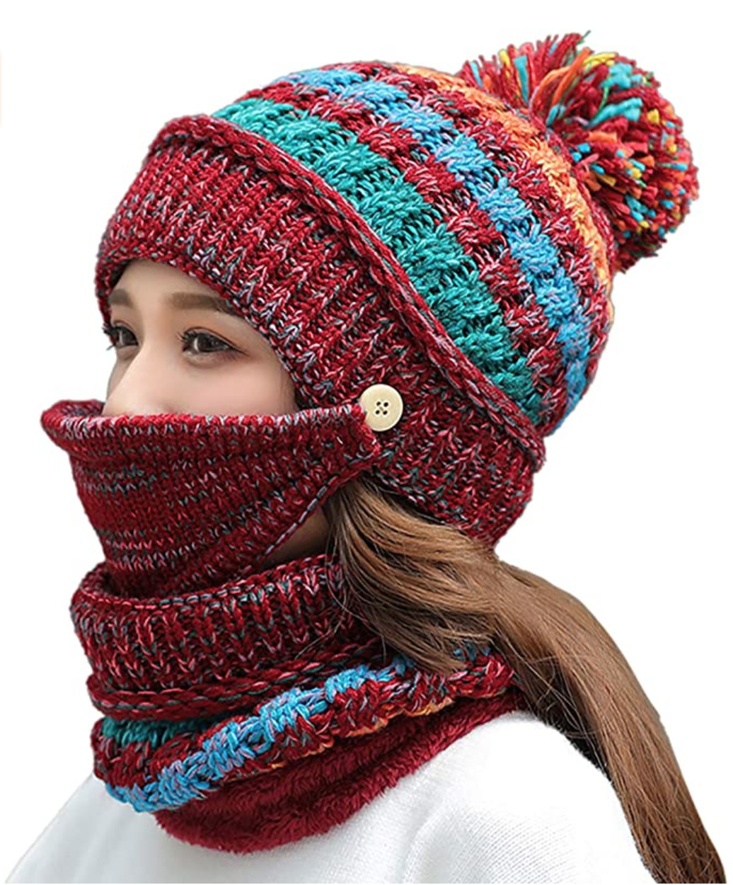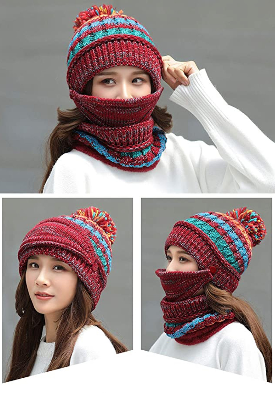 как выглядит Red winter Face mask detachable Hat. Includes Scarf фото
