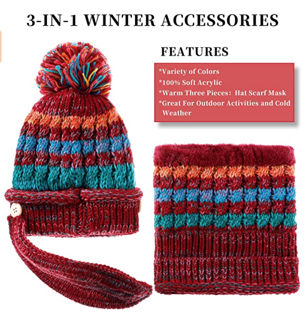 Red winter Face mask detachable Hat. Includes Scarf