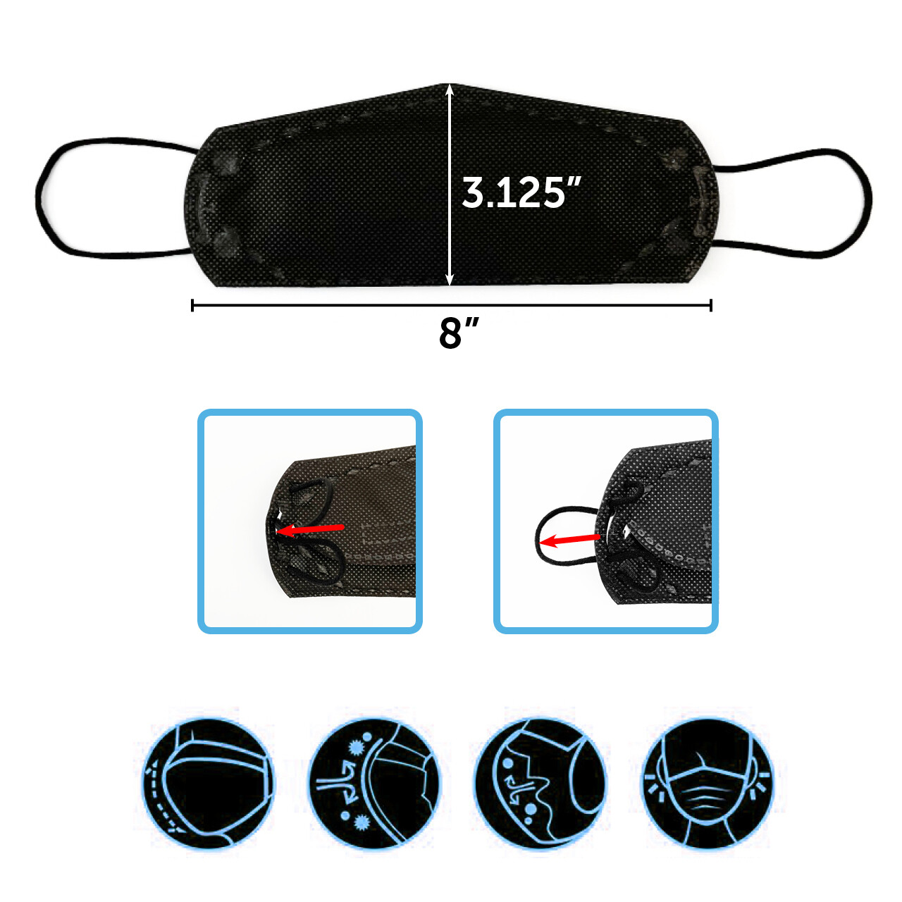 как выглядит 2 PCS KF94 BLACK Protective Face Mask Adult Made in Korea KFDA Approved HMCARE фото