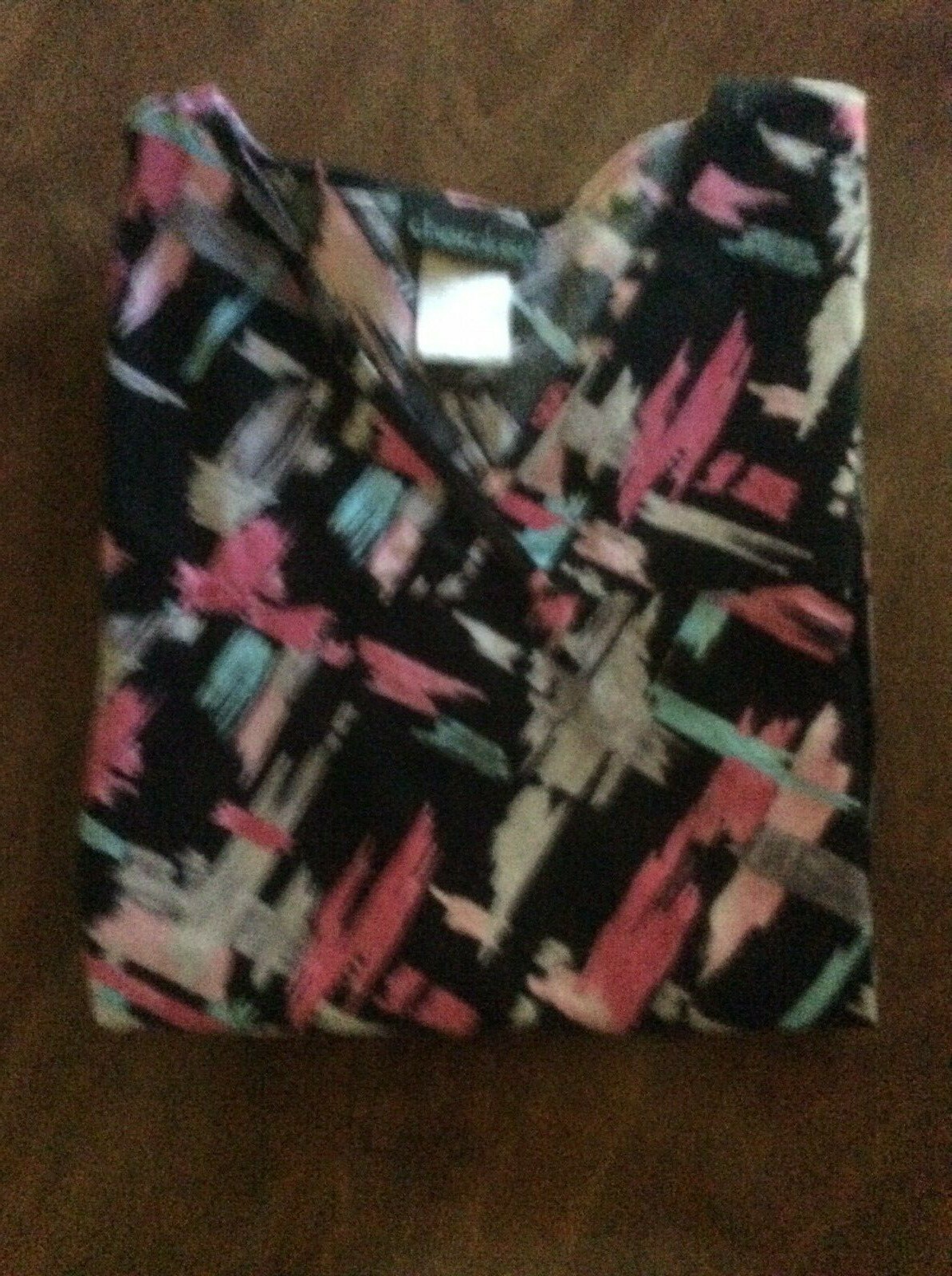 Ladies Cherokee Scrub Top Multi Color V-Neck Size M Gently Used