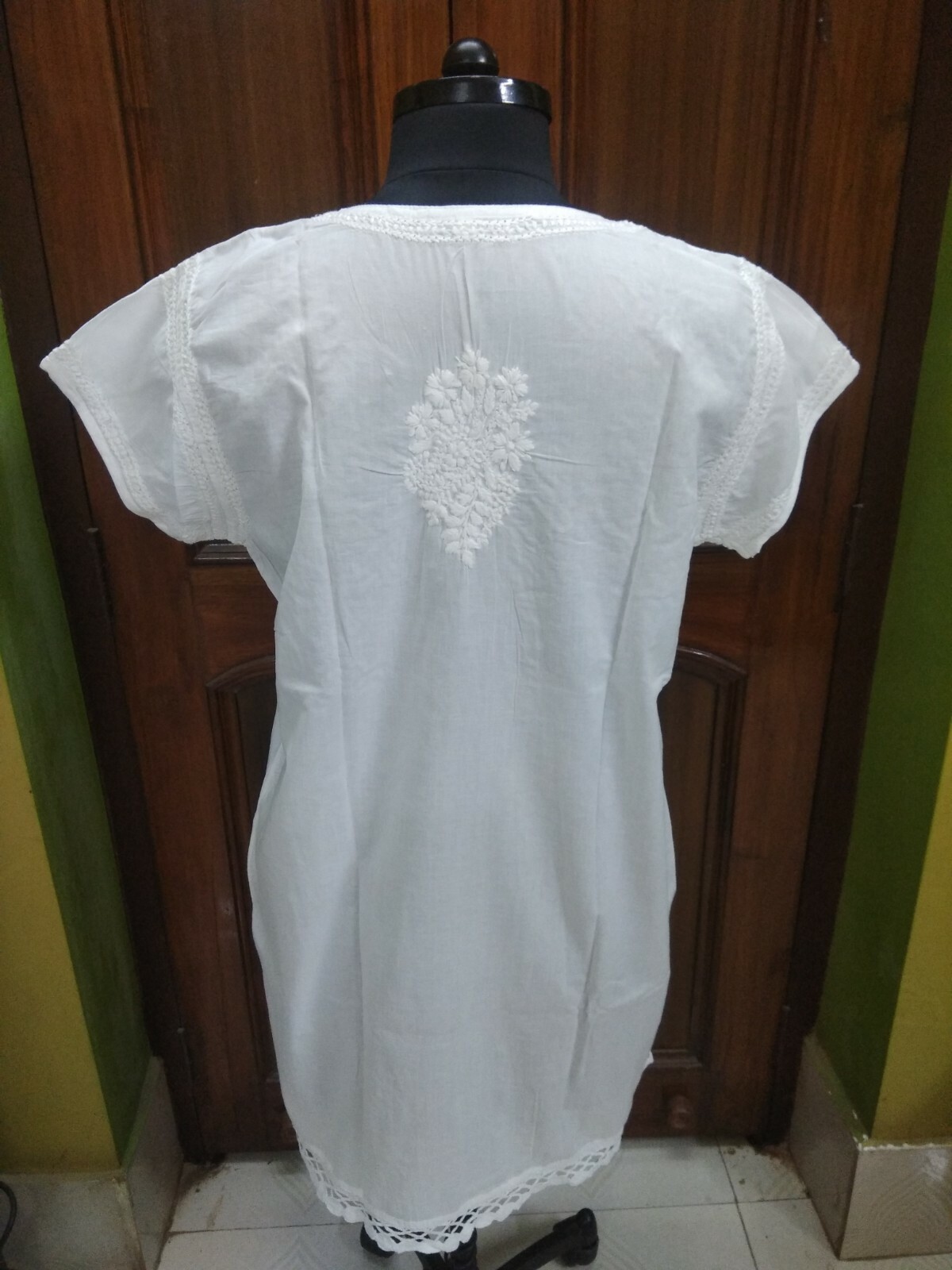 как выглядит BLOUSE SHIRT L 42" TUNIC 100 COTTON ETHNIC CHIKAN EMBROIDERY HANDMADE KURTA TOP фото