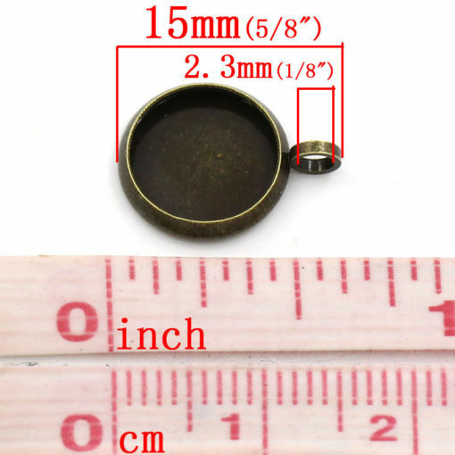10 pcs. Antique Bronze Circle Round Bezel Cabochon Pendant Trays 10mm Pad