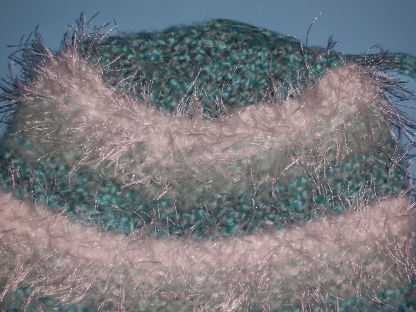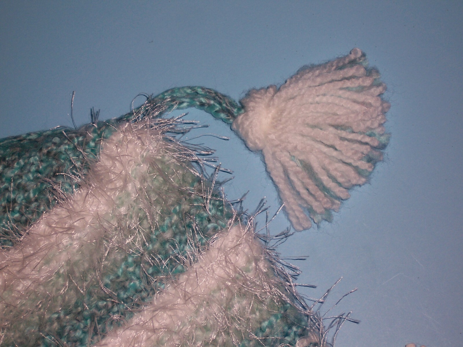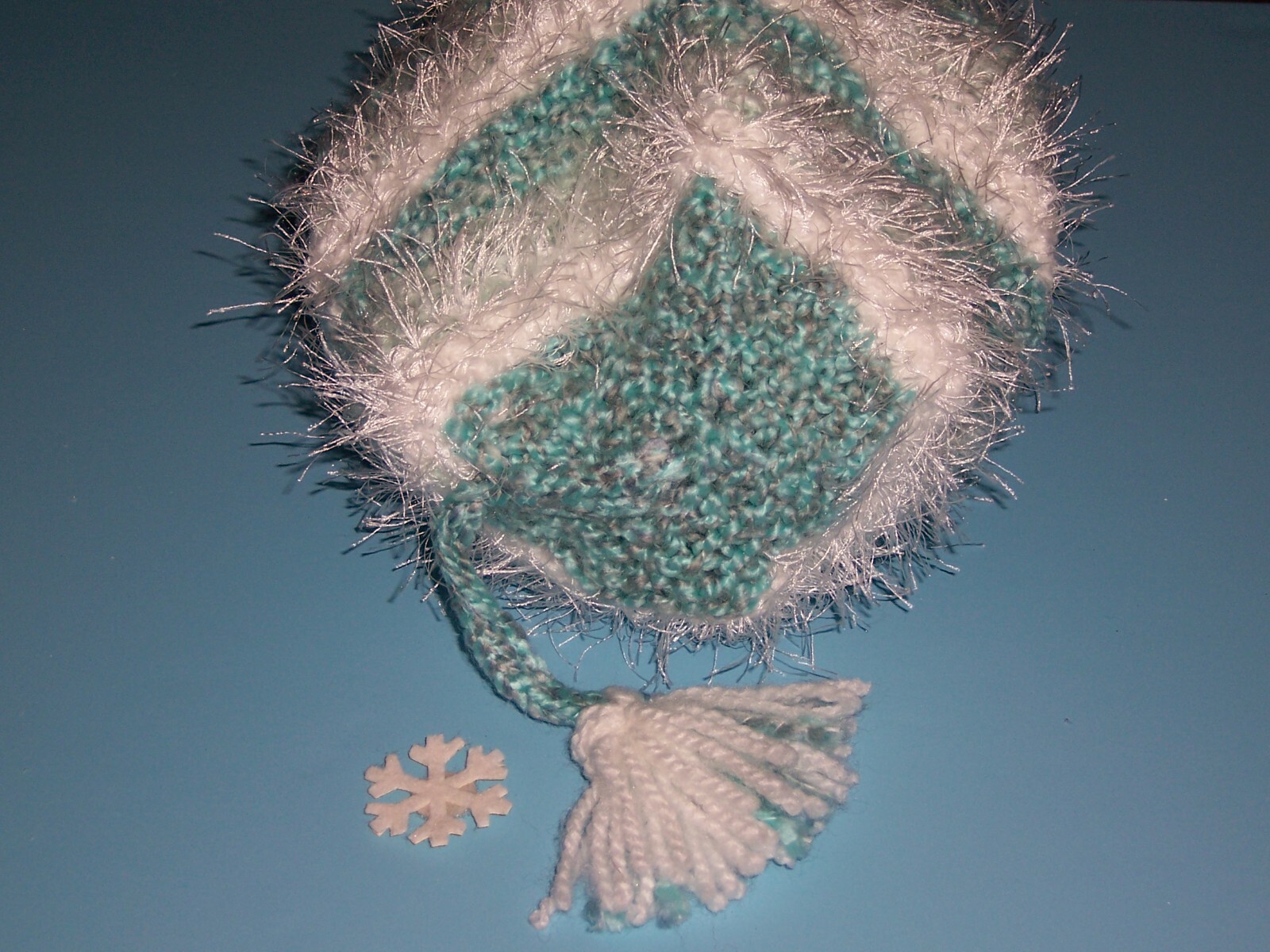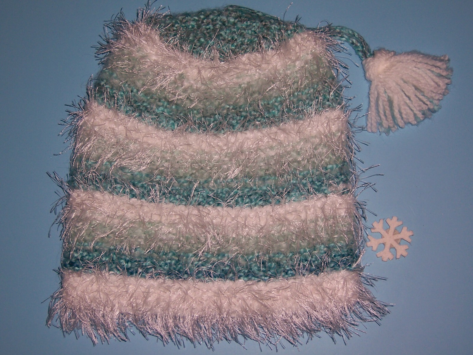 как выглядит Girls "AQUA WHITE STRIPED EYELASH HAT"...one size...HANDMADE by NANA...CUTE фото