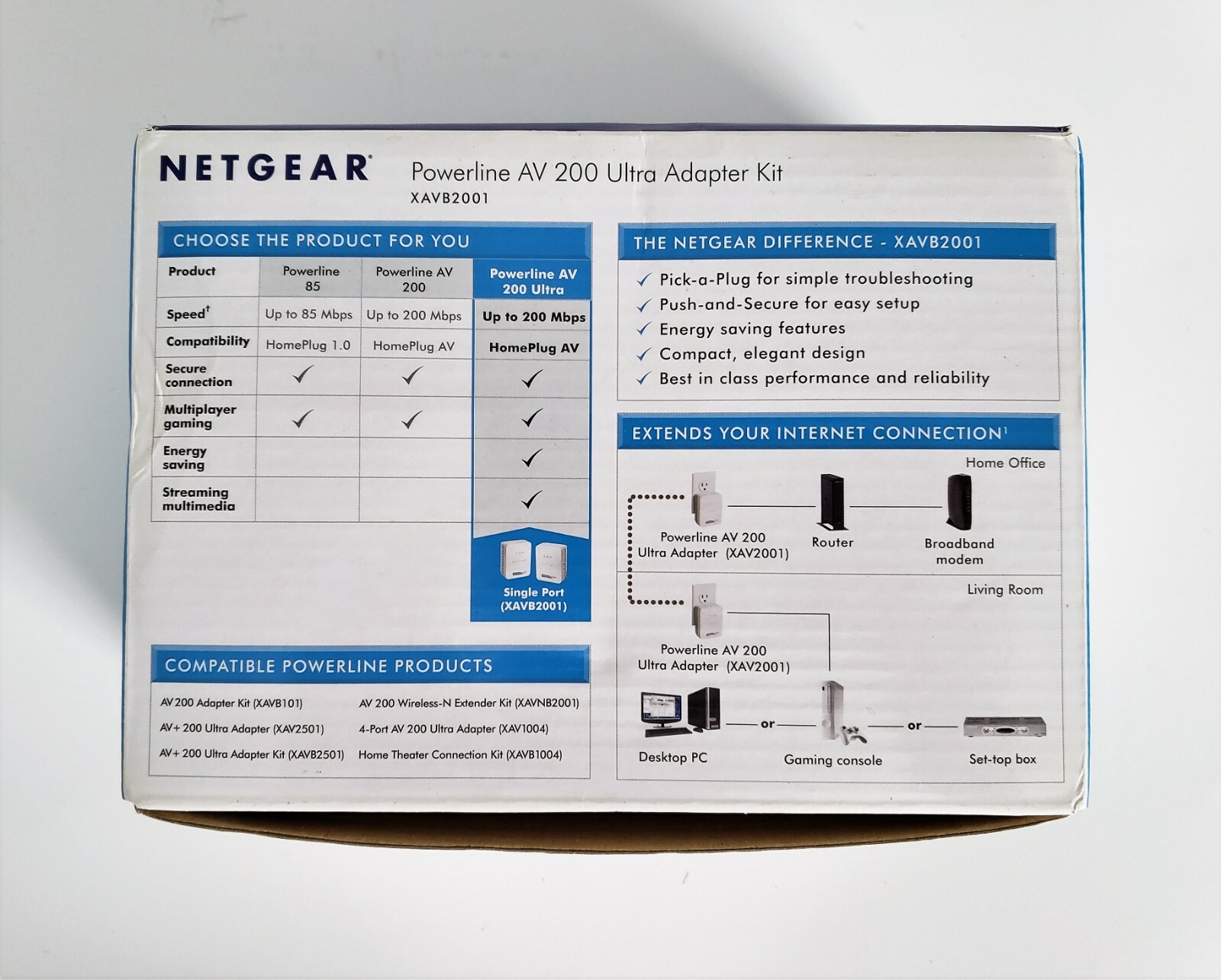 Netgear Powerline AV 200 Mbps XAVB2001 Ultra Adapter Kit Network White