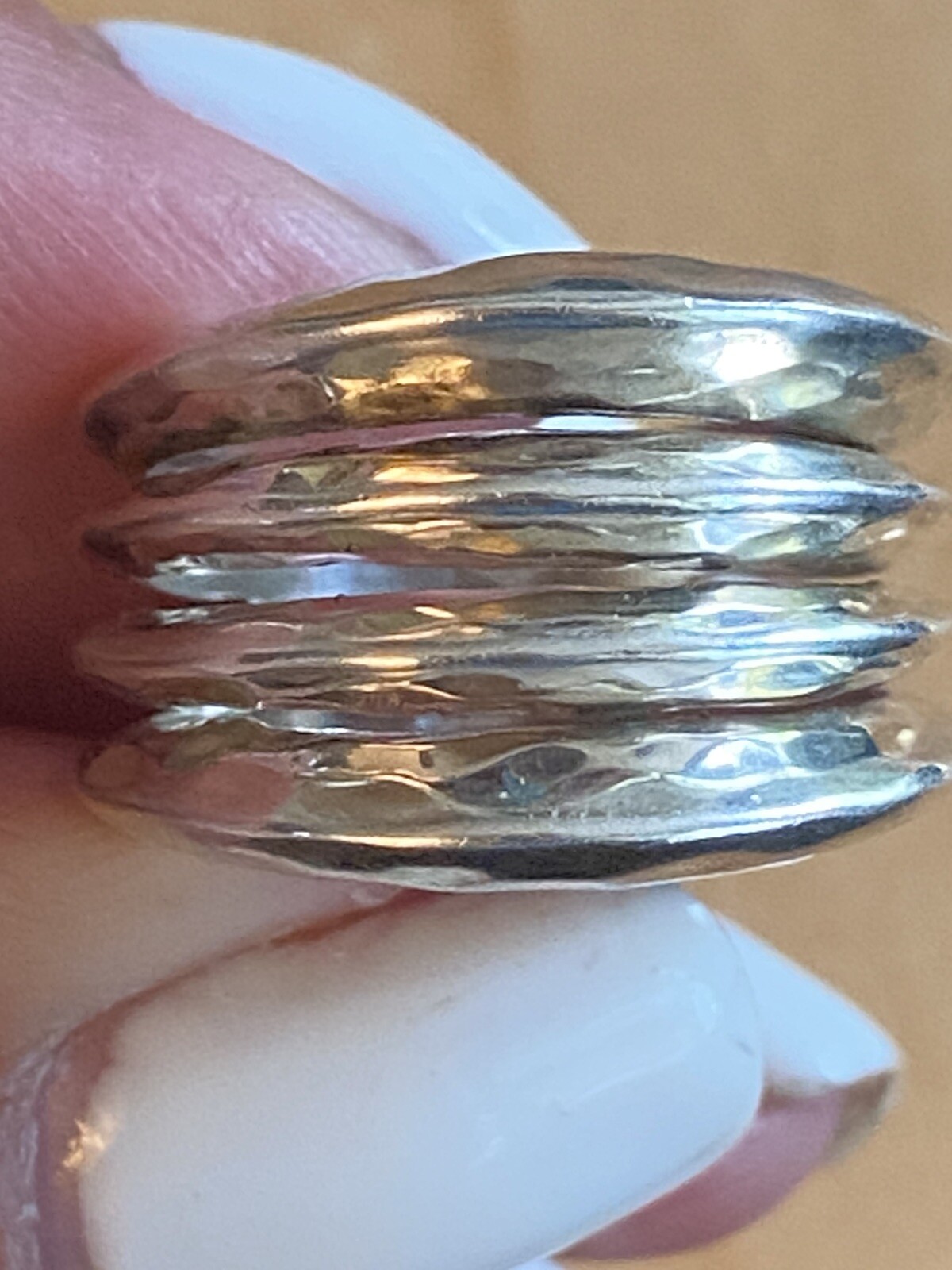 как выглядит Vintage Sterling Silver Hammered Design Ring Size 5.5 фото
