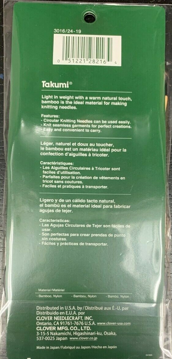 Clover Takumi Bamboo Circular Knitting Needles No. 19 3016/24-19