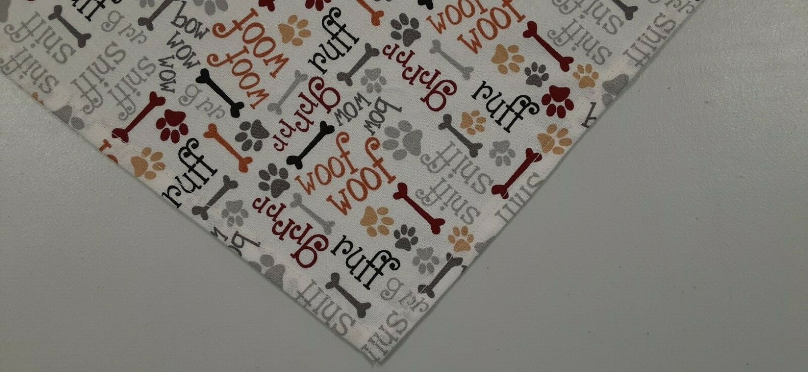 Buster Brown Dog Bandana/Scarf, Paw Prints, Bones, Woof, XS, S, M, L