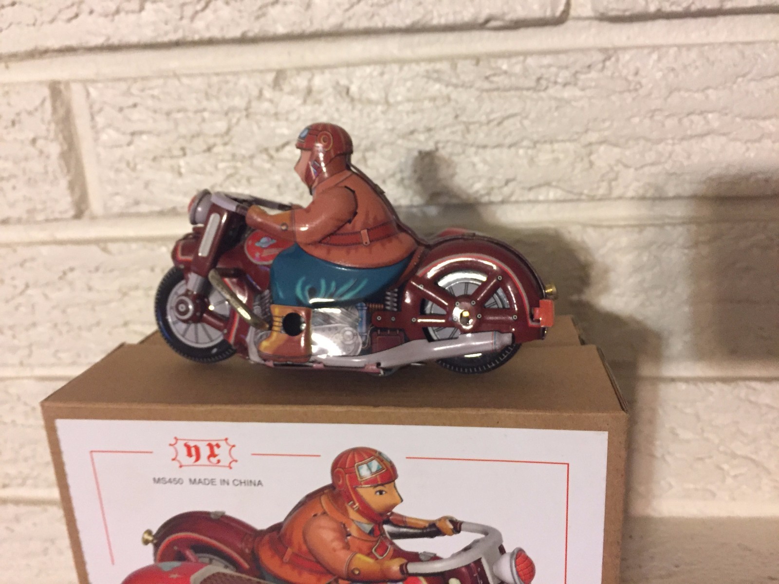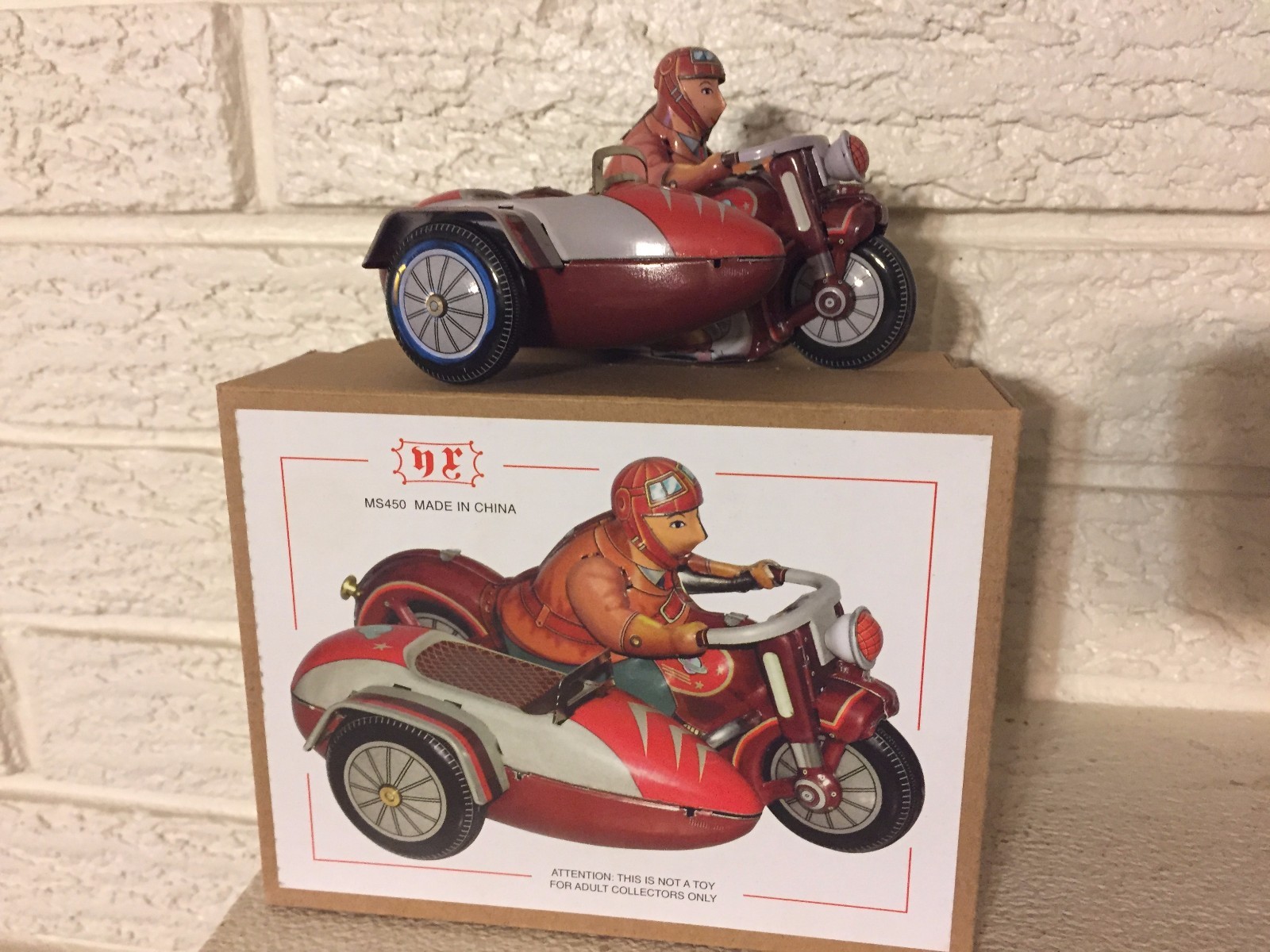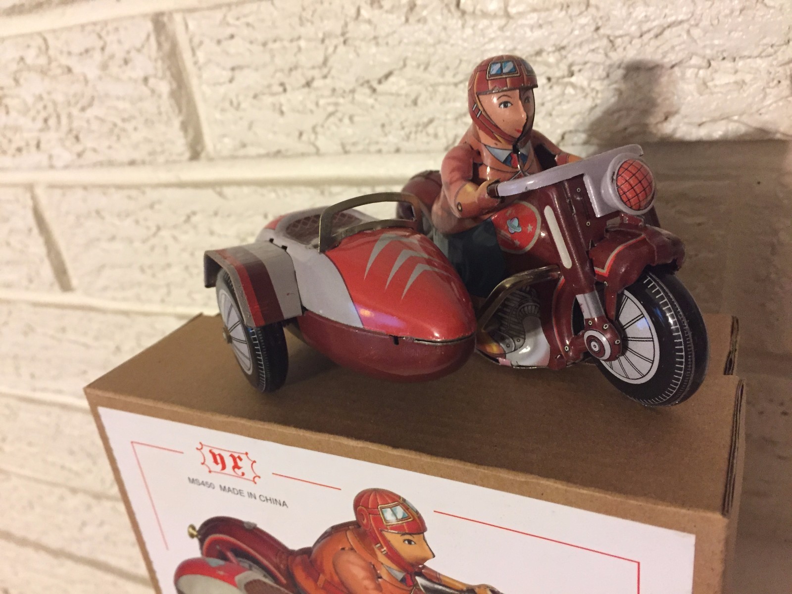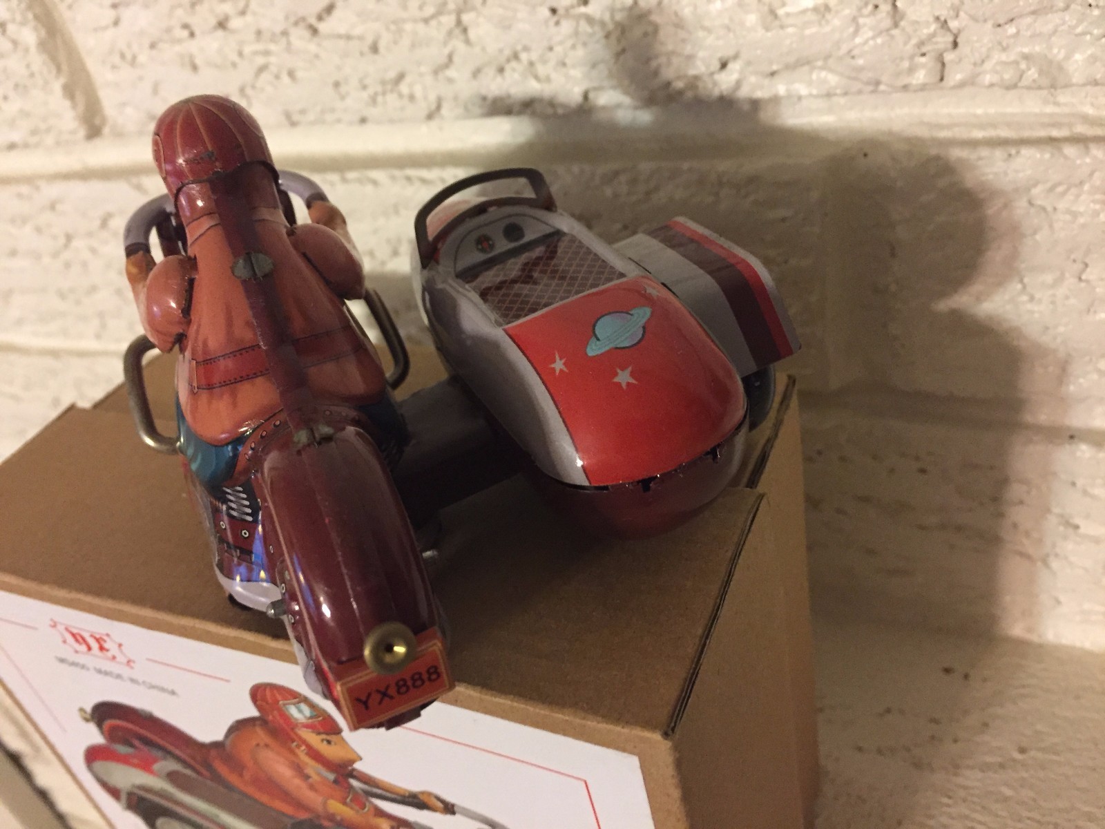 как выглядит SATURN SIDECAR MOTORCYCLE Tin Toy New Wind up Clockwork Mechanism NIB DL фото