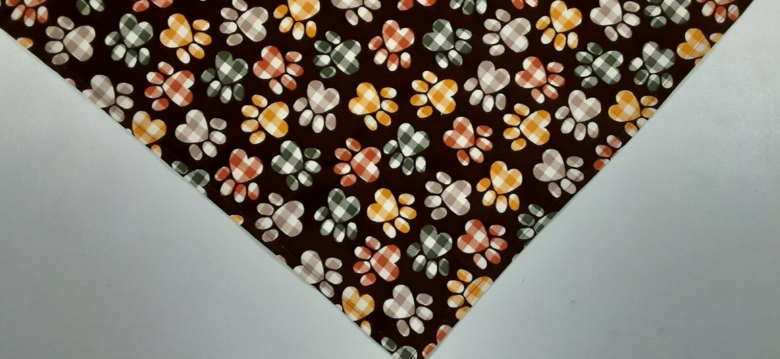 Buster Brown Dog Bandana, Brown, Gold, Red, Paw Prints, Autumn, Hearts, Large