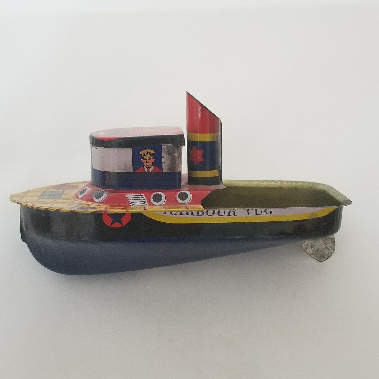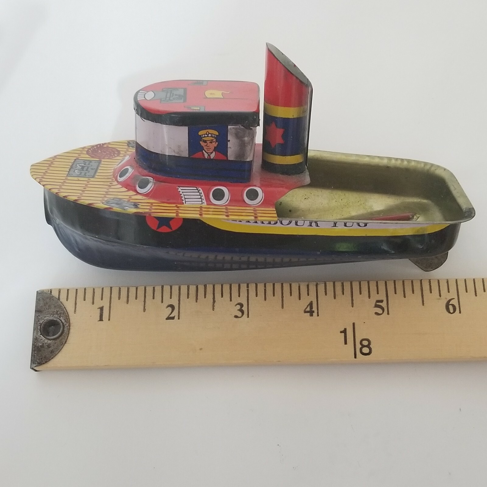как выглядит Tin Harbour Tug Steam Engine Antique Toy Reproduction Rattandeep Untested India фото