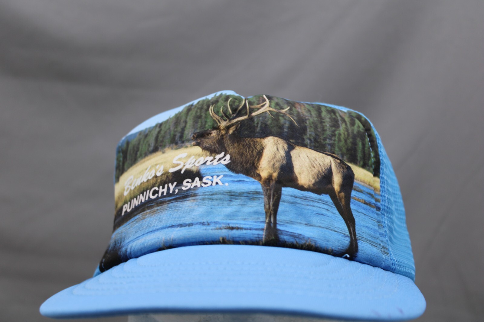 Vintage Screened Trucker Hat - Benkos Sports Elk Graphic - Adult Snapback