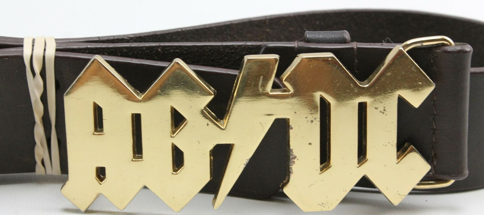 как выглядит Vintage AC/DC Belt Buckle and Leather Belt фото