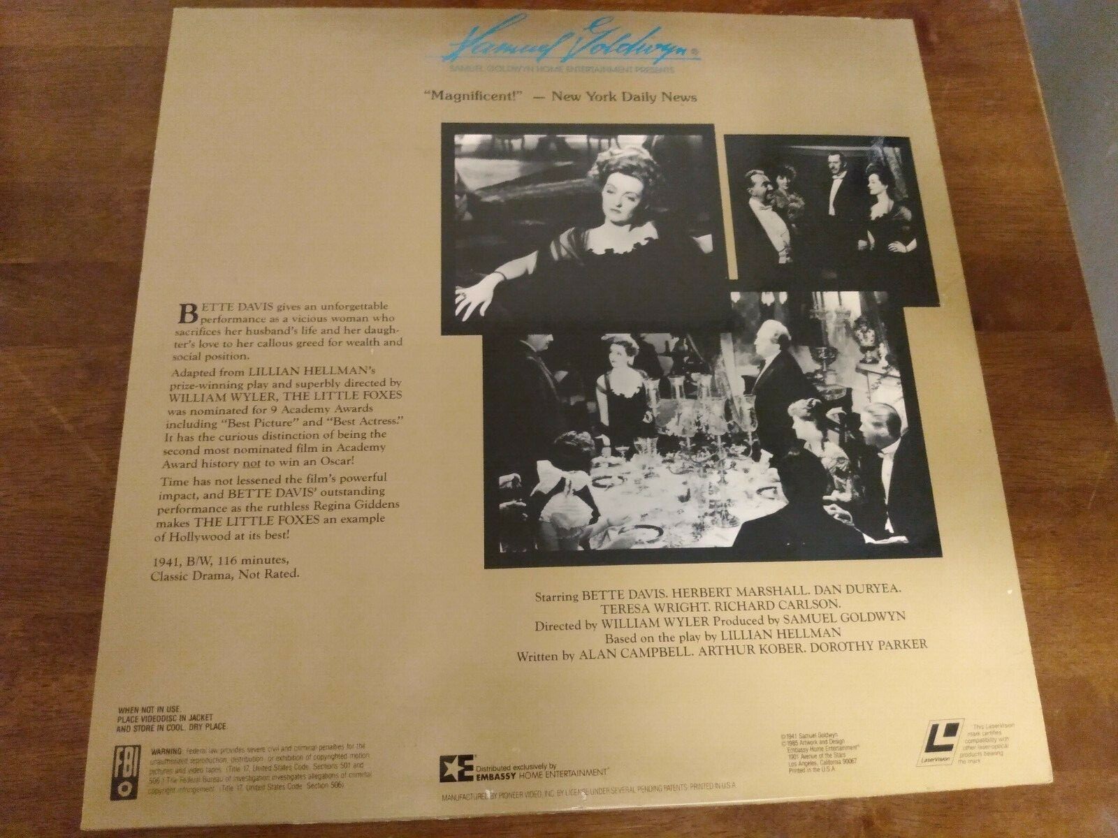 The Little Foxes Laserdisc Movie Bette Davis Used