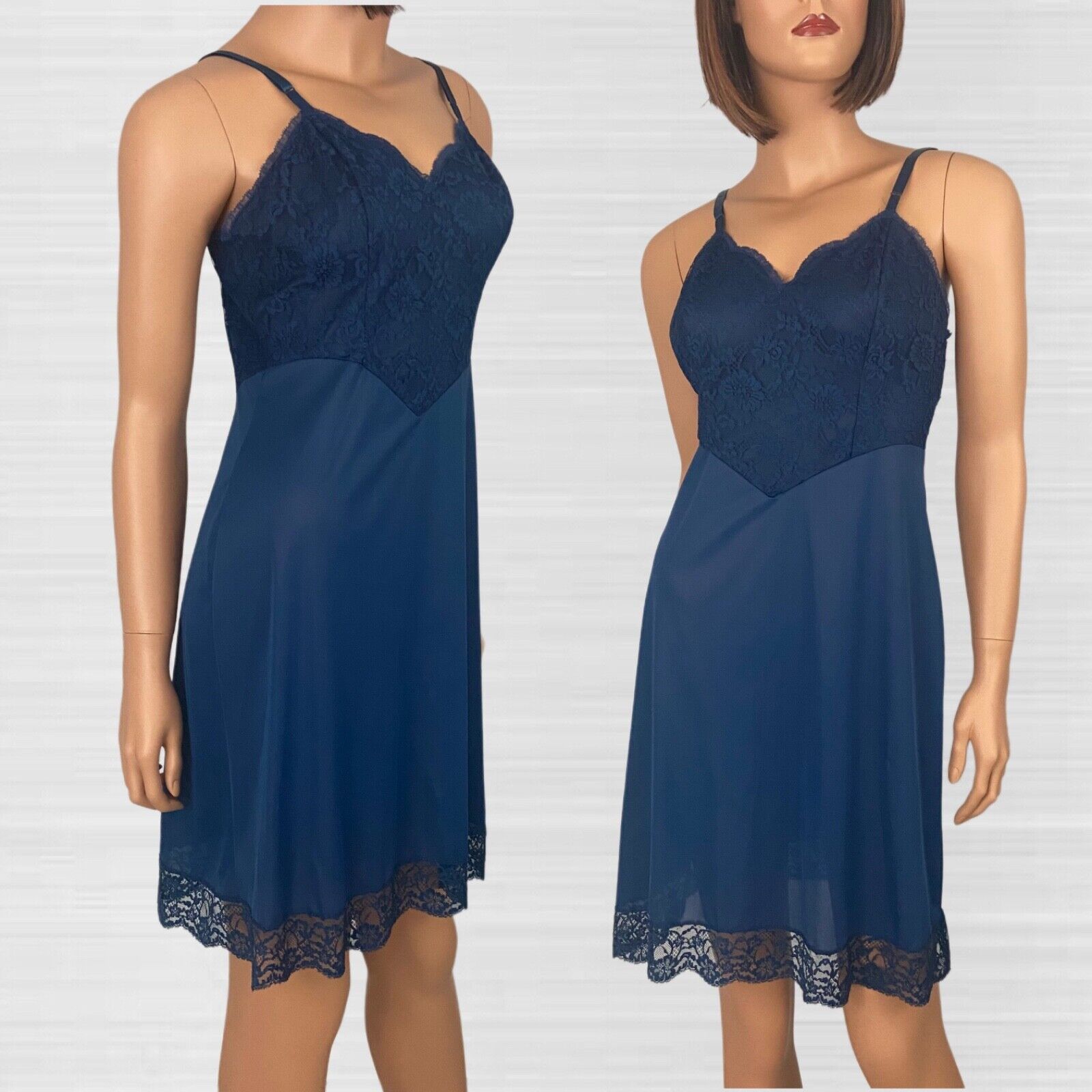Vintage 60 s Vanity Fair Slip Full 34 Bust Sapphire Blue Nylon Lace Lacey USA
