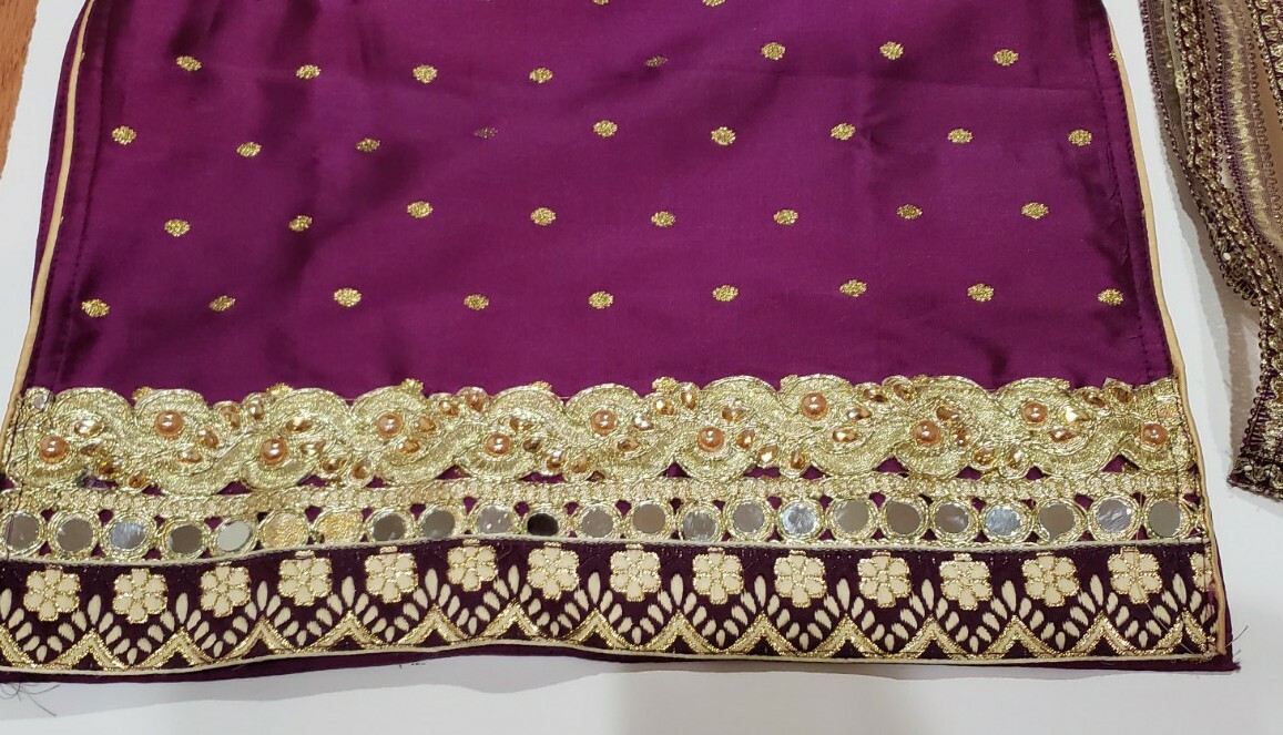 Toddler Girl Indian Purple Silk Salwar Kameez With Gold Net Dupatta Sz 24 3-4
