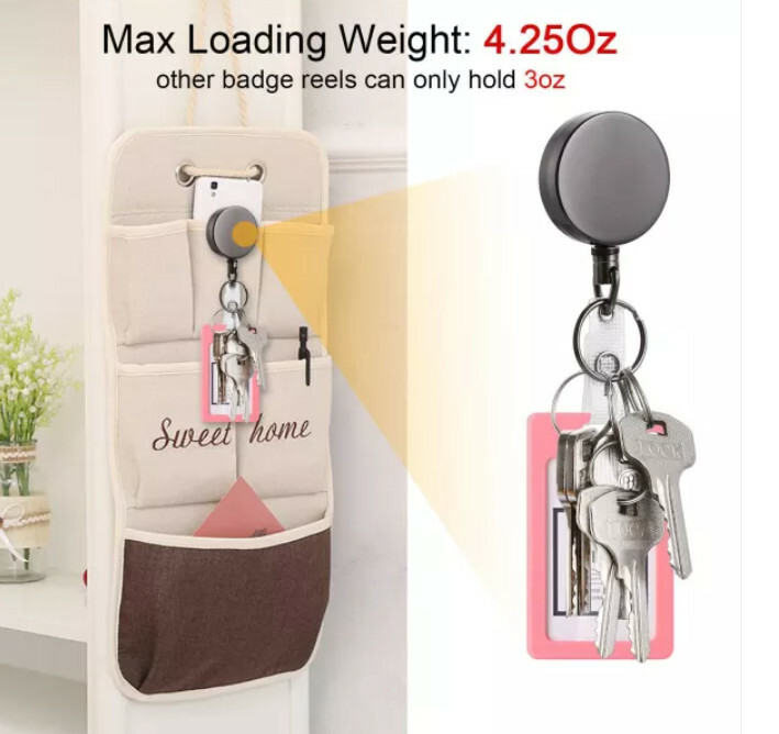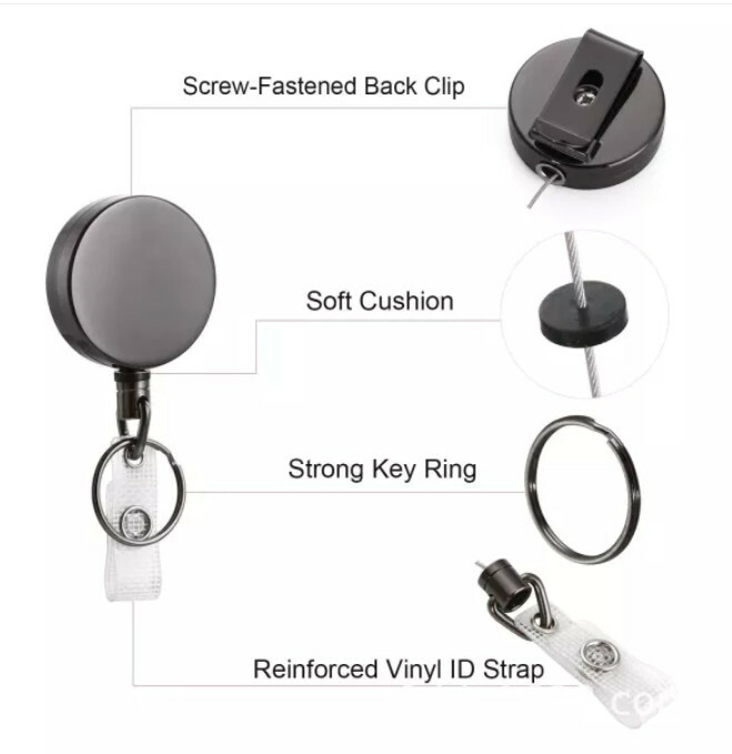 Retractable ID Badge Holder Heavy Duty Metal Belt Clip Keychain Steel Wire Cord