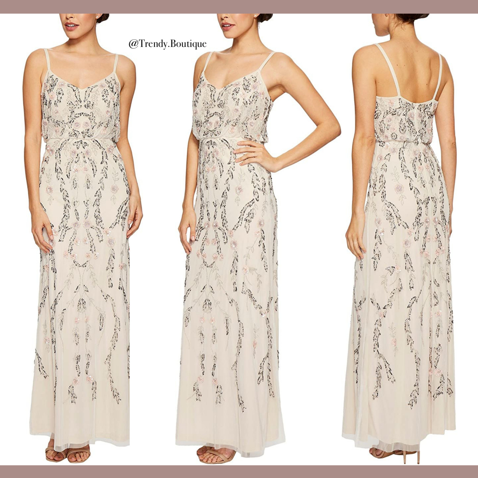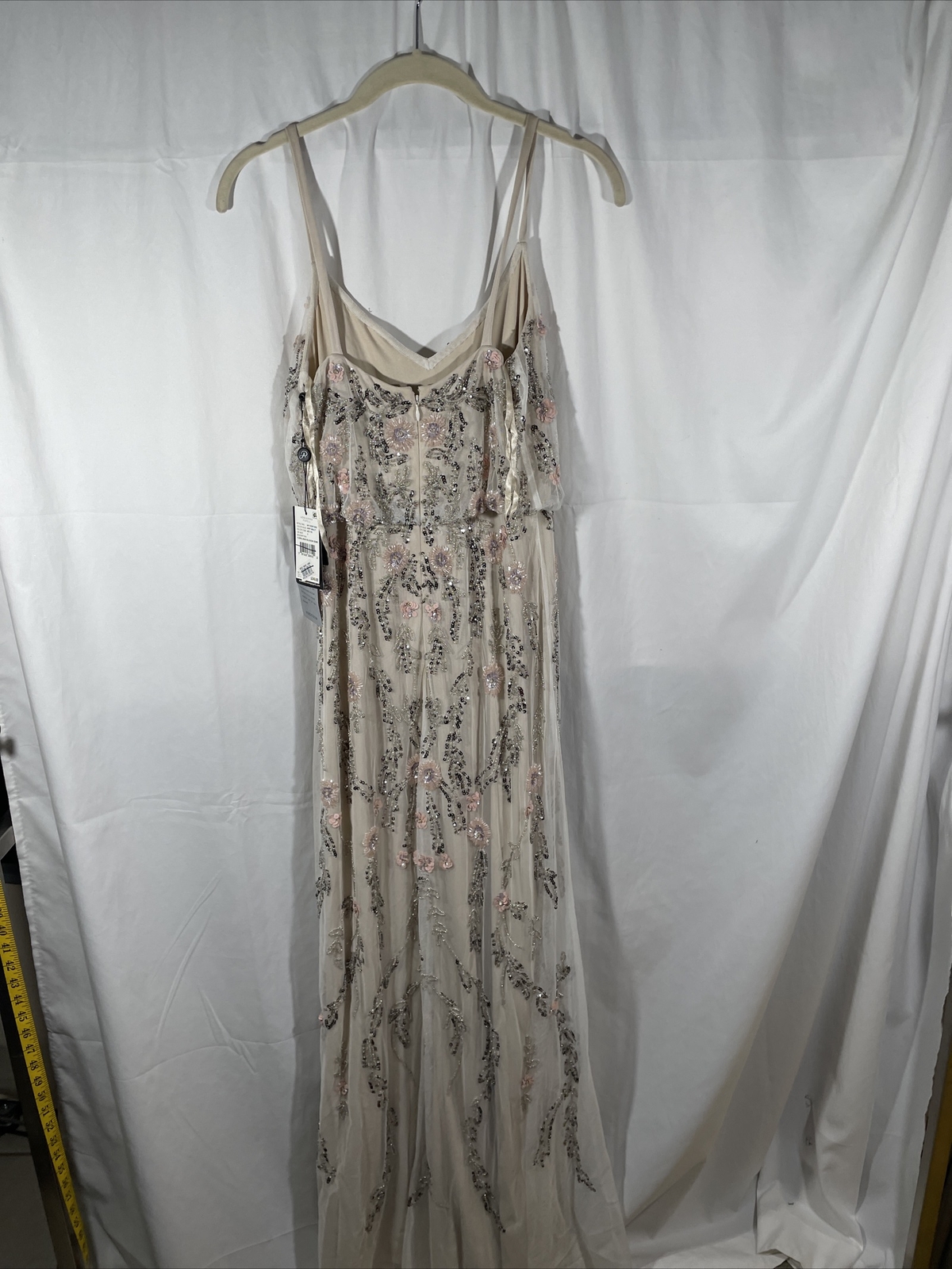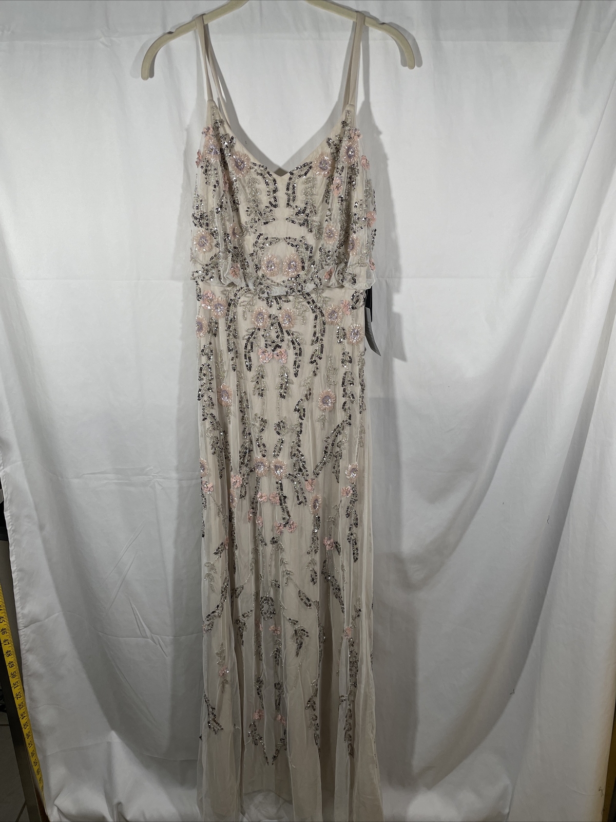 как выглядит NWD 349 Adrianna Papell Floral Beaded Mesh Blouson Gown in Ivory SZ 2 Q125 фото