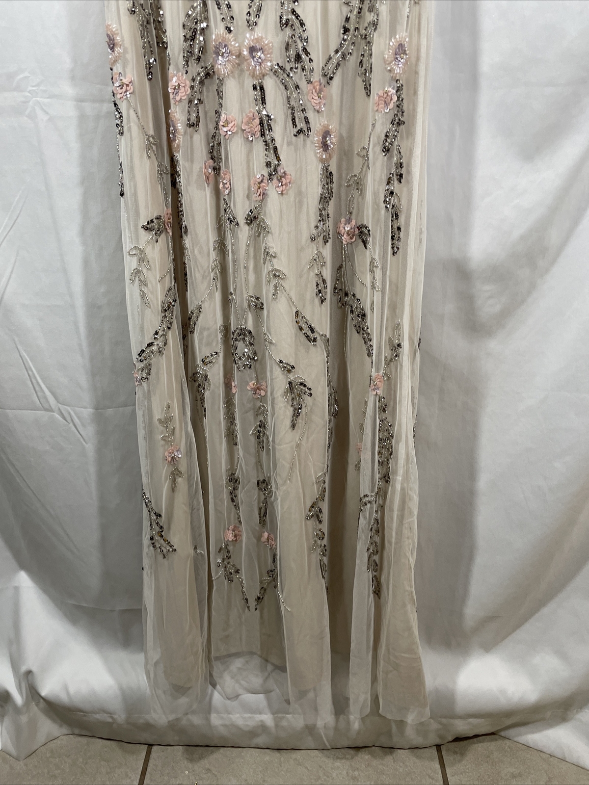 NWD 349 Adrianna Papell Floral Beaded Mesh Blouson Gown in Ivory SZ 2 Q125