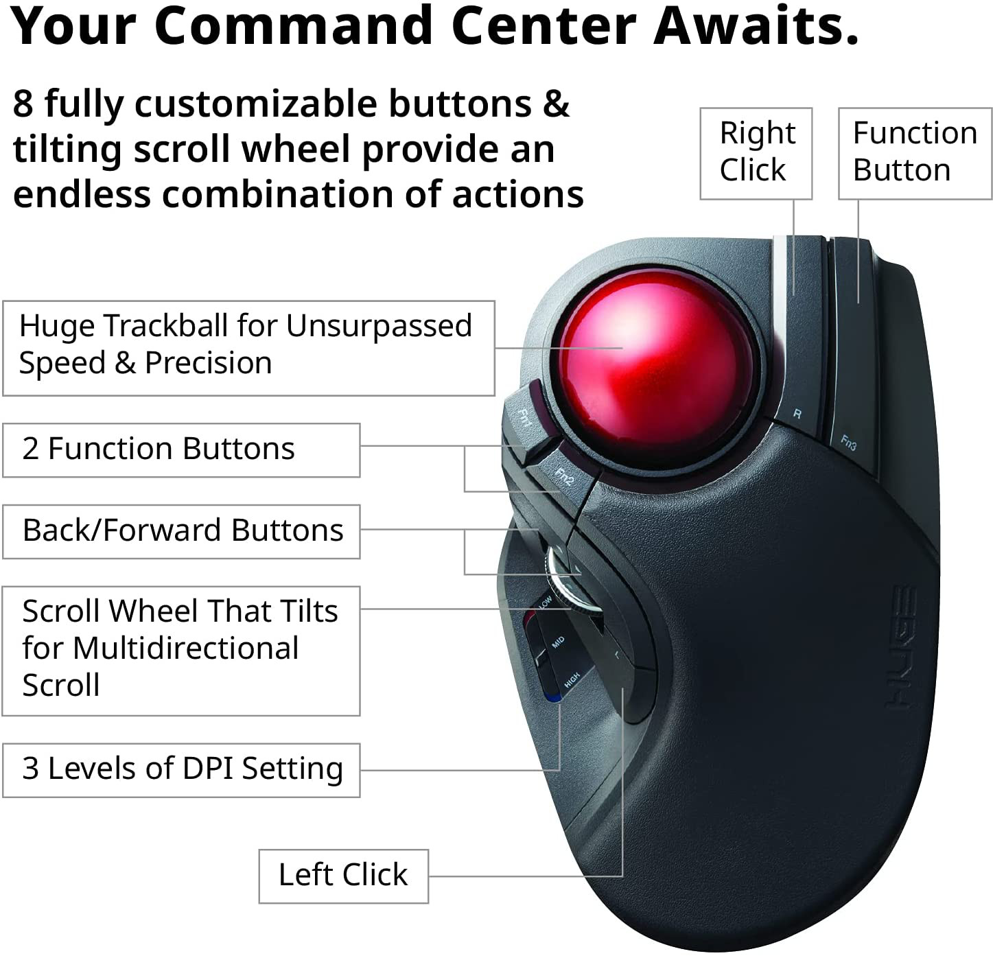 Elecom M-Ht1Drbk Wireless Trackball Mouse - Extra Large Ergonomic Design
