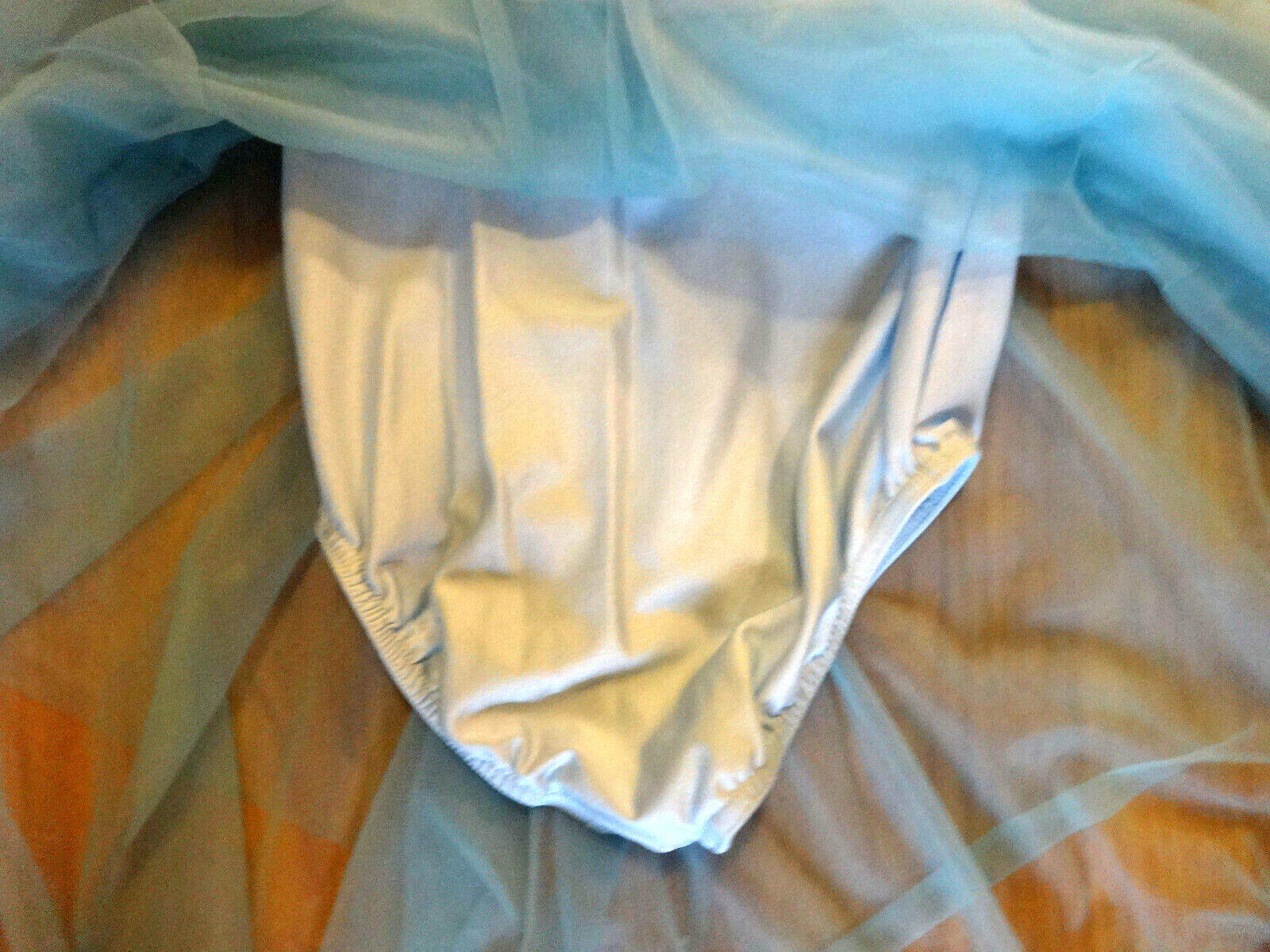 UNDERNEATH: BUILT IN LEOTARD MATCHES LT BLUE BACK