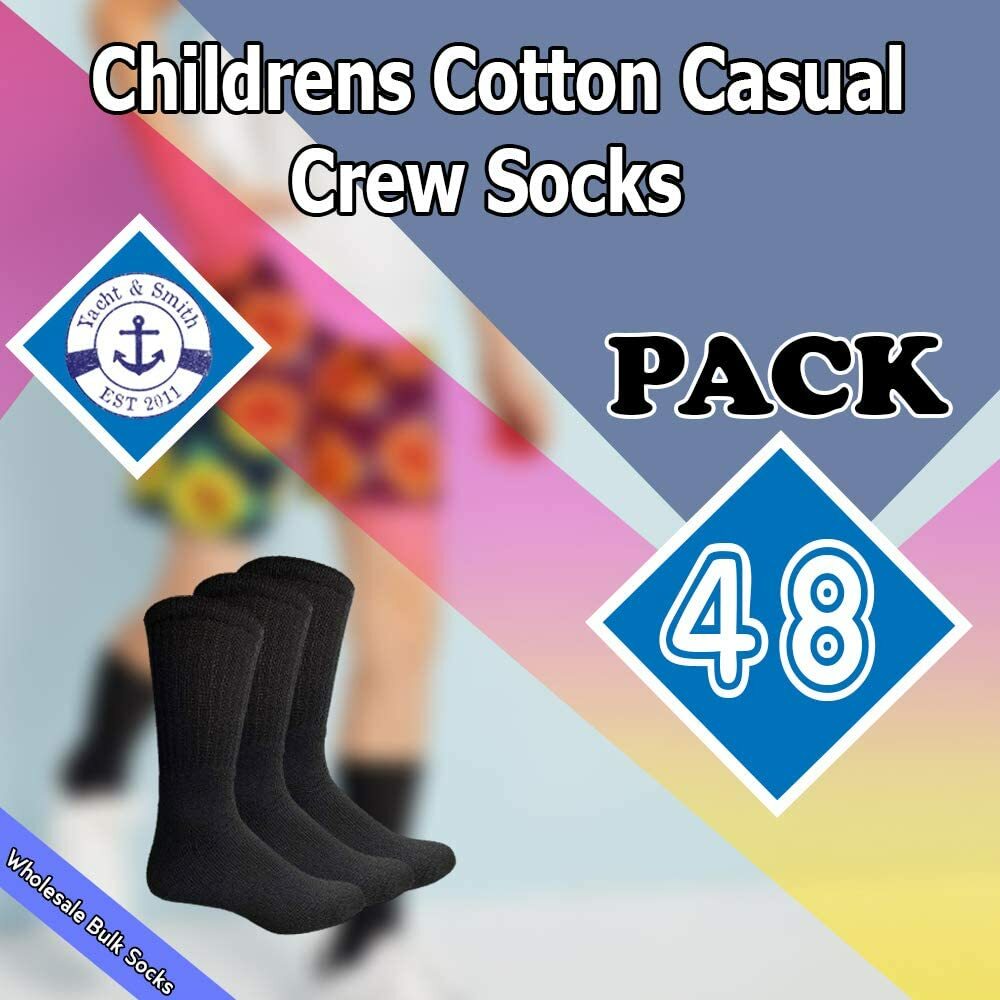 48 Pairs Yacht Smith Kids Premium Cotton Crew Socks Black Size 4-6 Boys