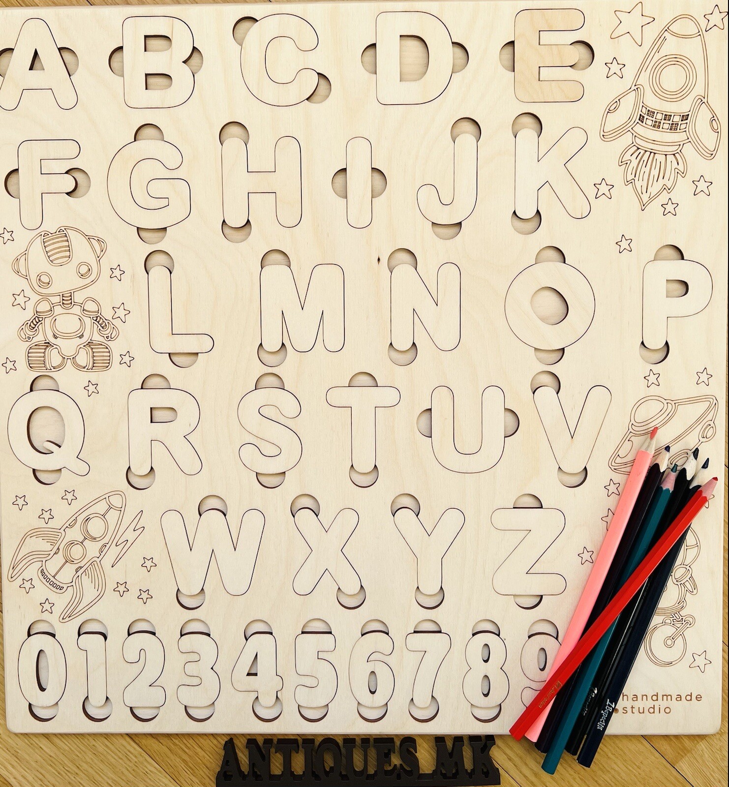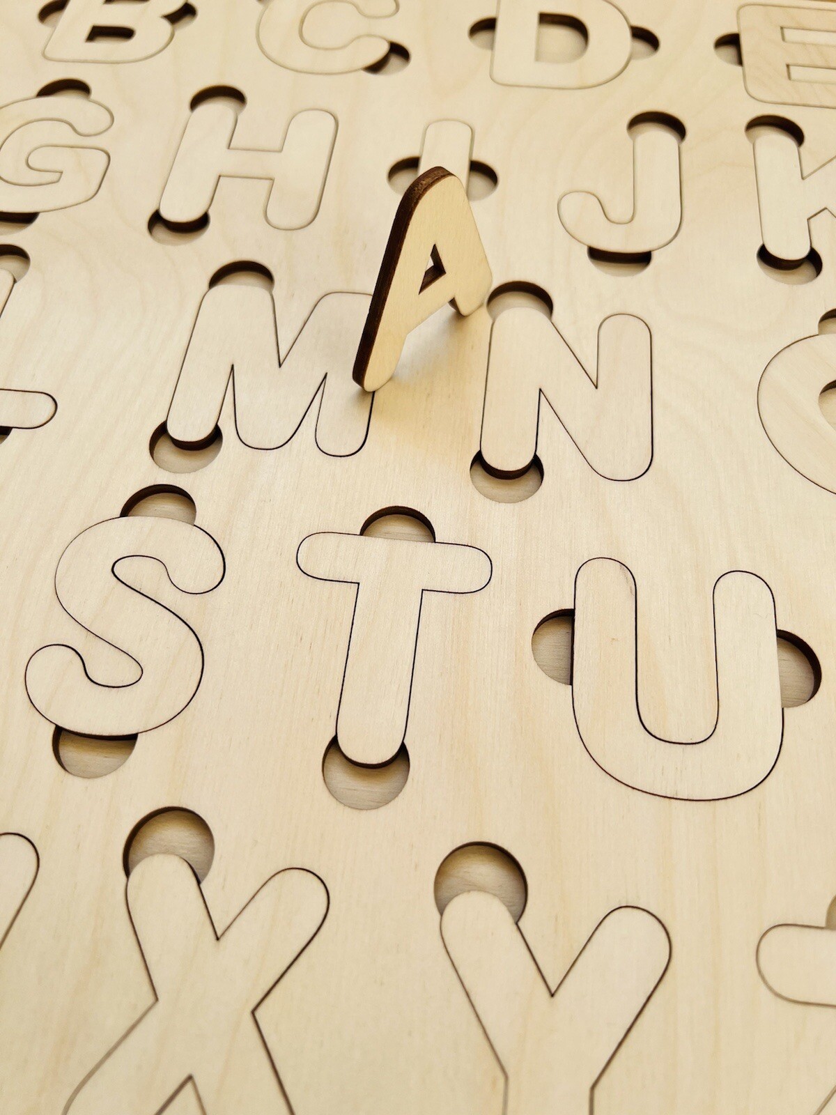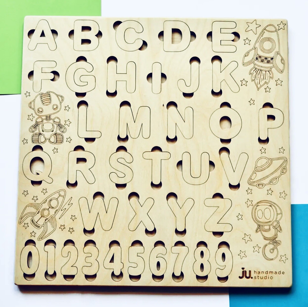 как выглядит New Wooden Alphabet Letters Numbers Jigsaw Puzzle for painting Kids . ORGANIC фото