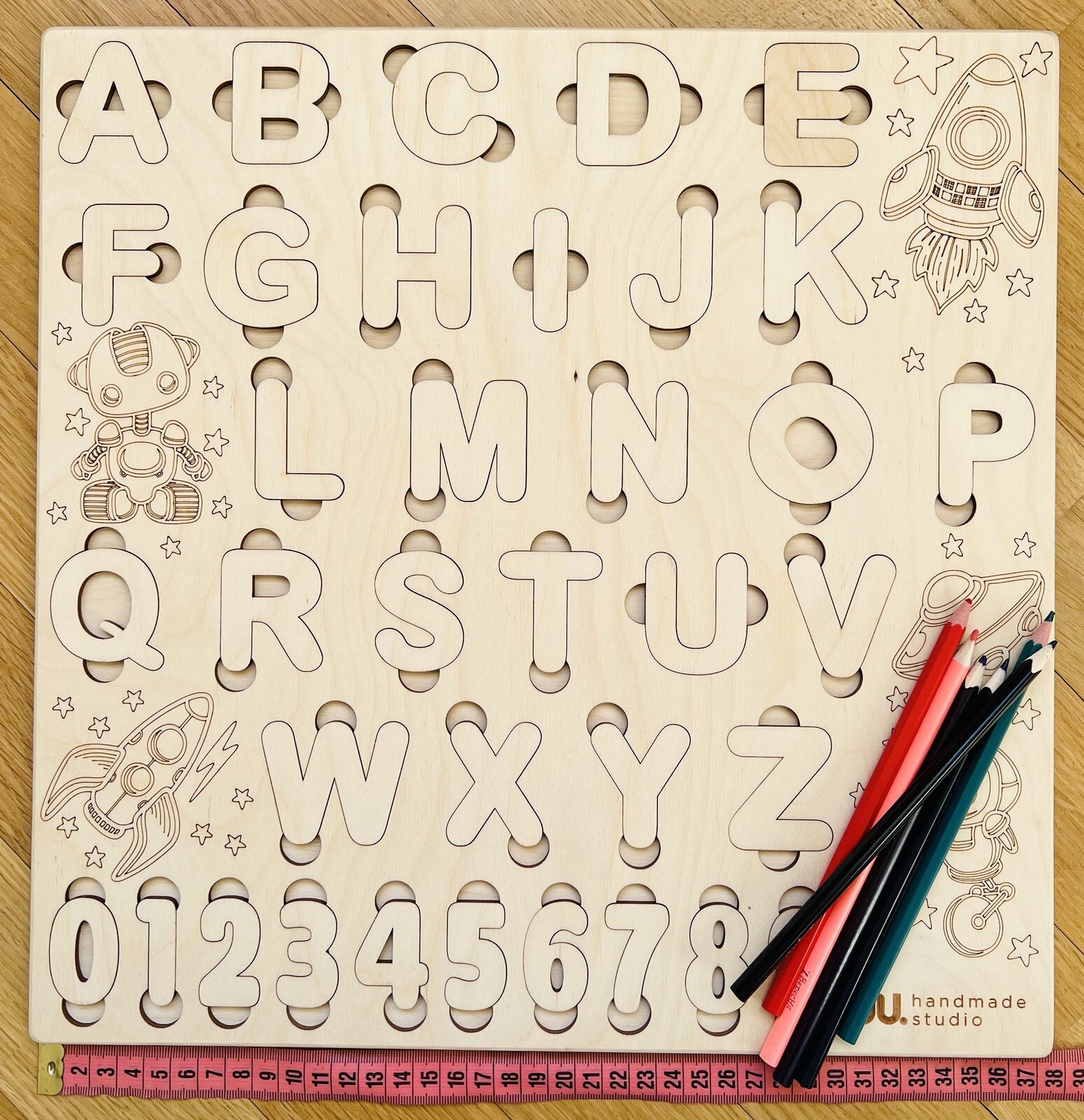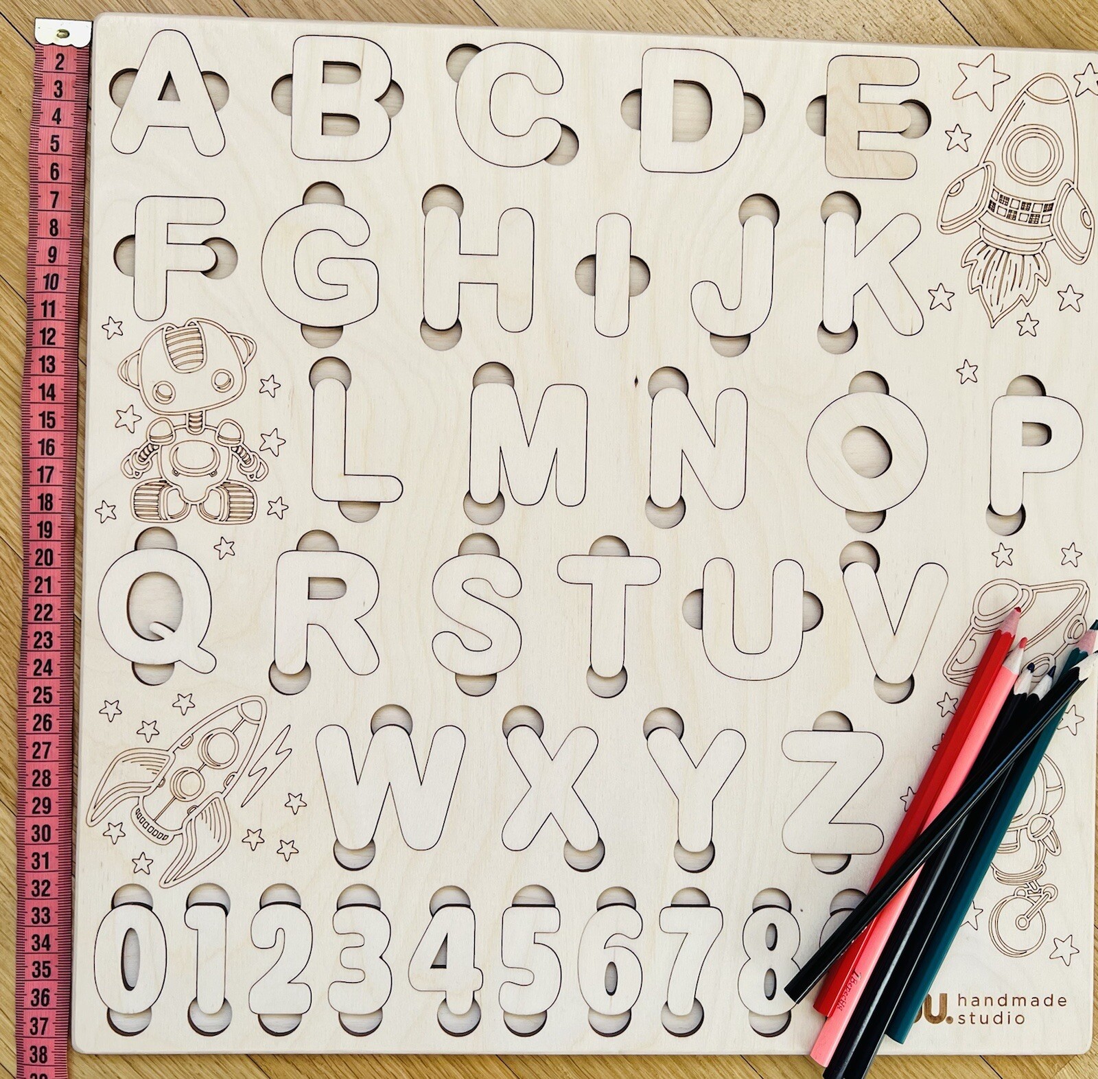 New Wooden Alphabet Letters Numbers Jigsaw Puzzle for painting Kids . ORGANIC