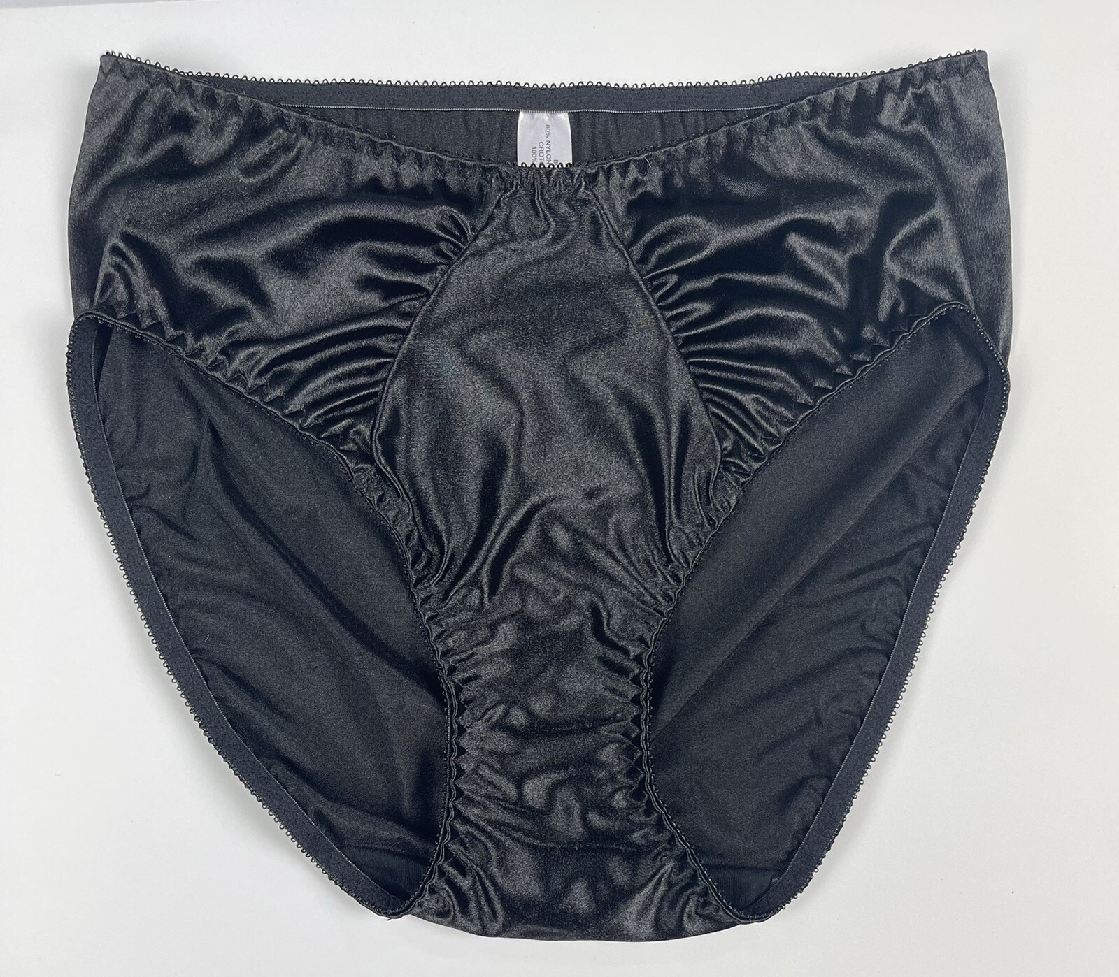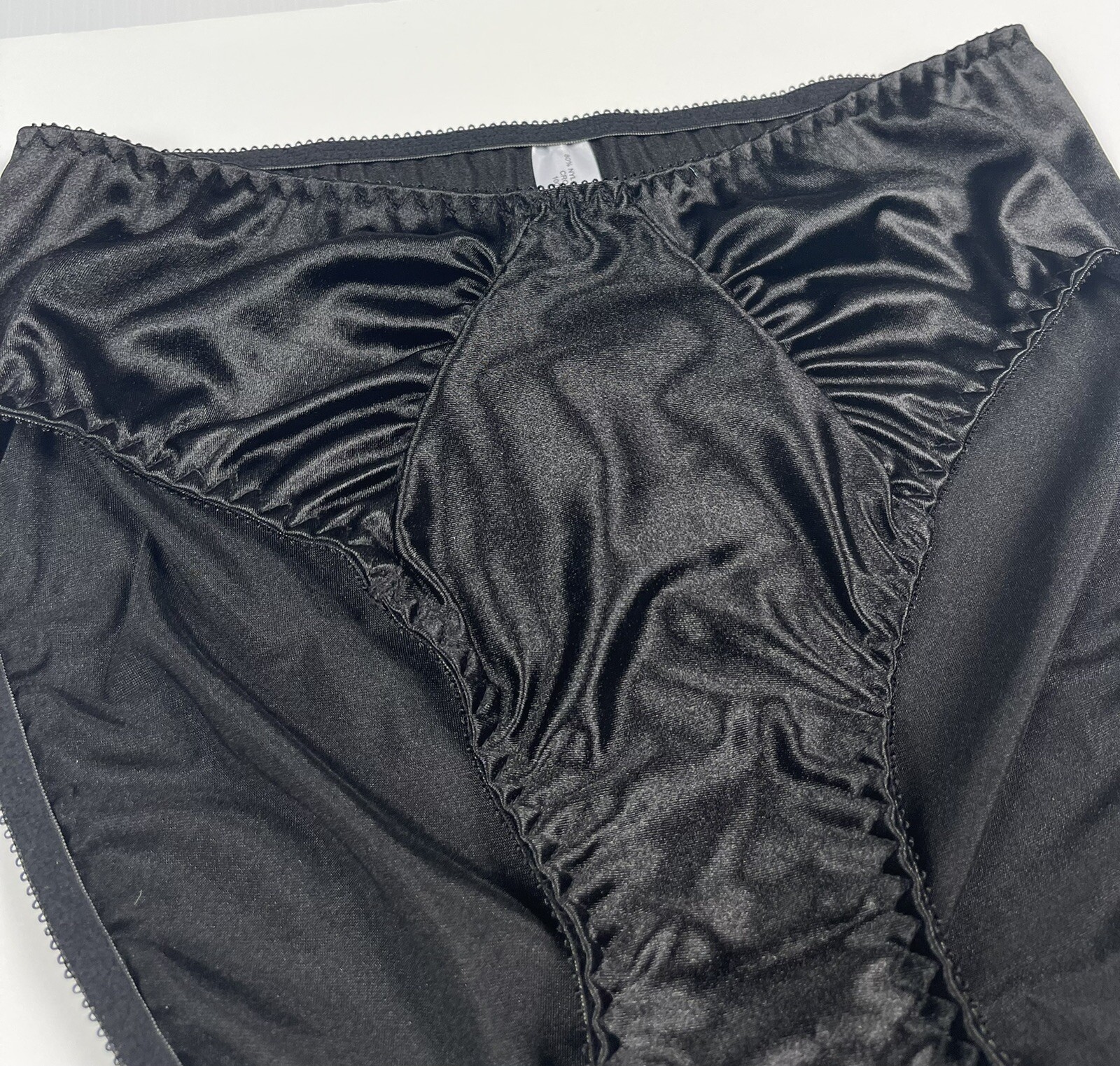 Hi-Cut Satin Panty with Ruched Accents Black XL